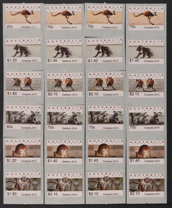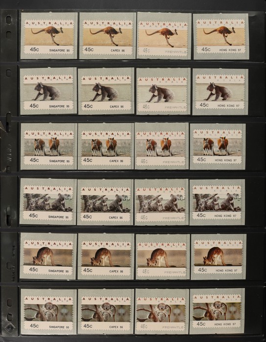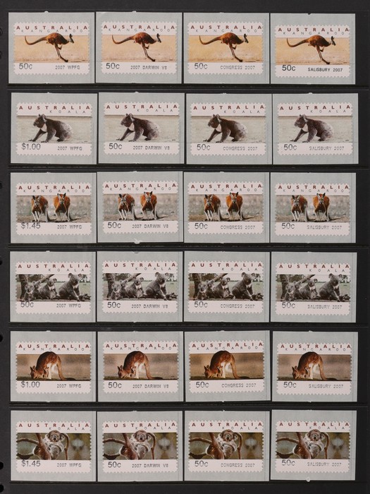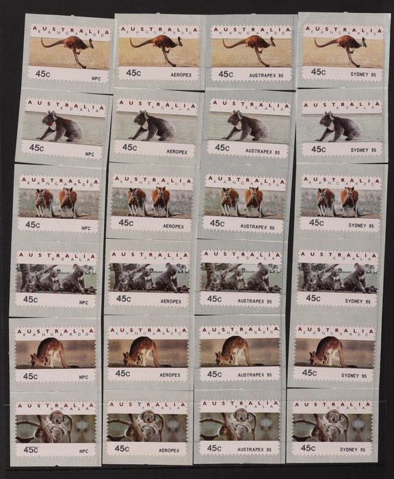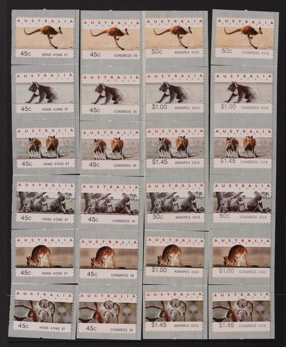 132 imageCPS - Counter Printed Stamps: 1993-2010 collection with sets of 6 severed singles inc Endangered Species (3 sets), then Kangaroos & Koalas inc 45c blank liberal, values 45c, 50c & 55s plus 'button value' sets to 50c/$1/$1.45. Also Painting Candle Roof prs (3) with blank literal, 45c NPC1 & $1.00 NPC1. FV alone $200. Retail $1050 for normal issues plus premium for button sets, plus est $600 for proofs, so total $1600+. (75 sets, 456 stamp) (Image1) (Image2) (Image3) (Image4) (Image5) (Image6) (Image7) (Image8) (Image9) (Image10) (Image11) (Image12) (Image13) (Image14) (Image15) (Image16) (Image17) (Image18) (Image19) (Image20) (Image21) (Image22)