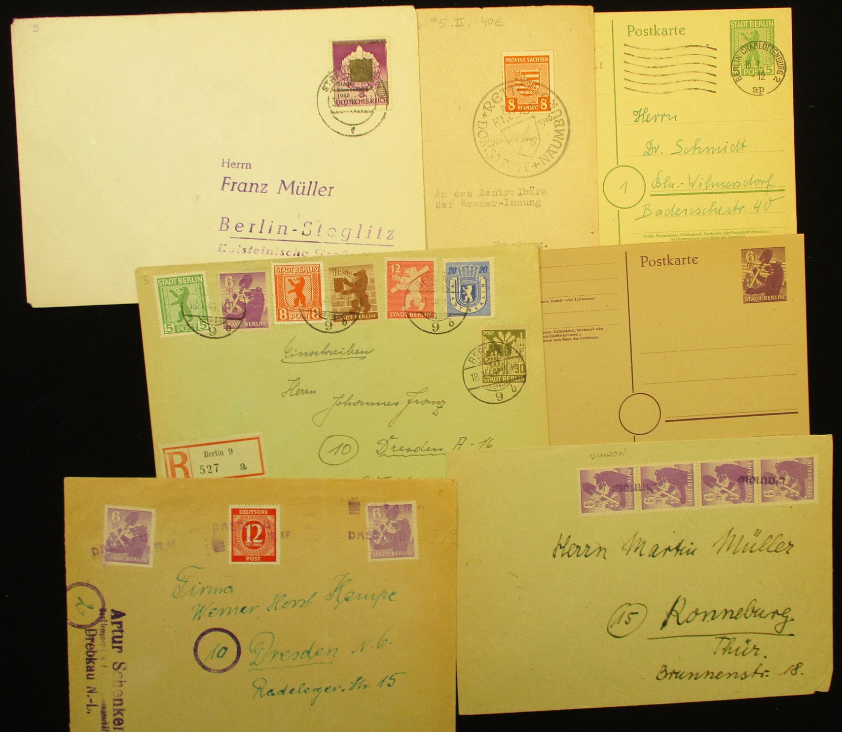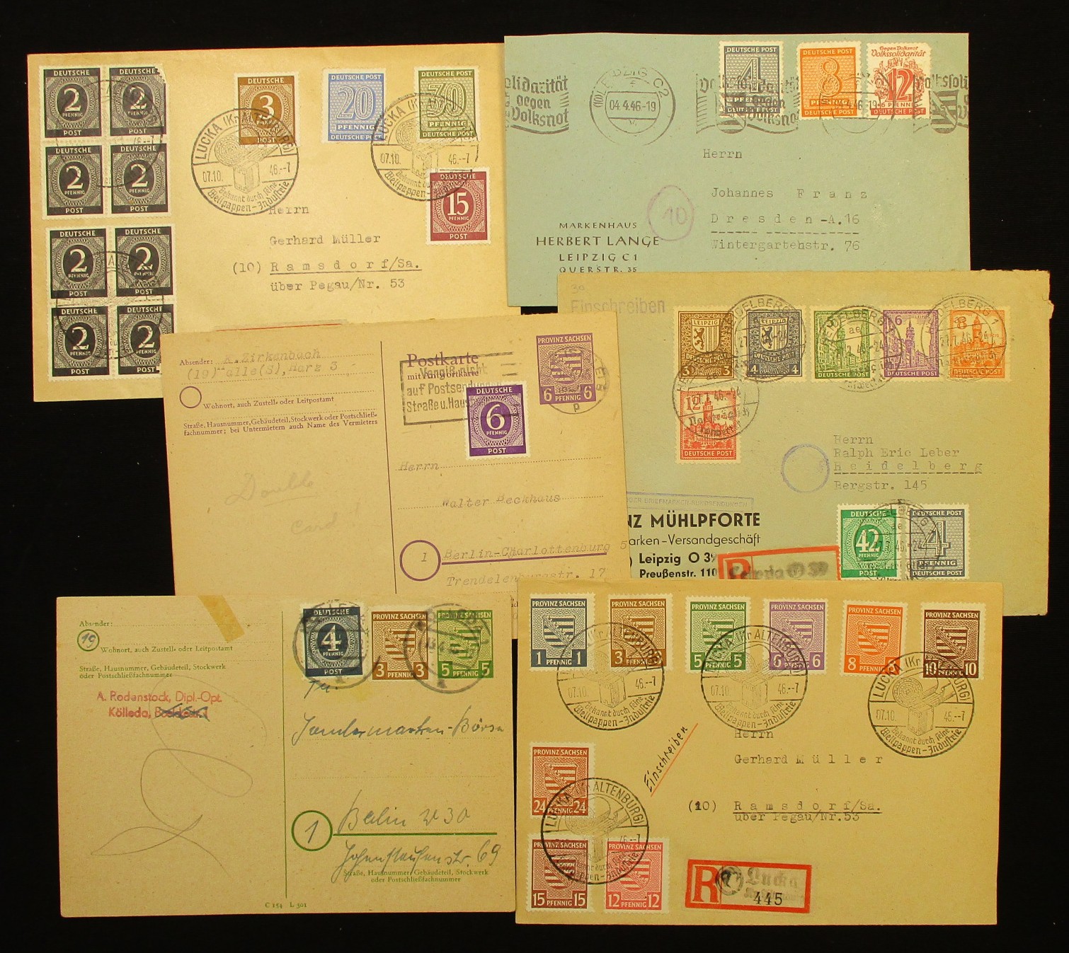 Germany Group of Soviet Zone Covers and Stationery Group 1 - A diverse group of 1945-6 Soviet Zone - East, West, and Province of Saxony covers and postal stationery. Includes 4 unused cards, 26 used items, many with mixed