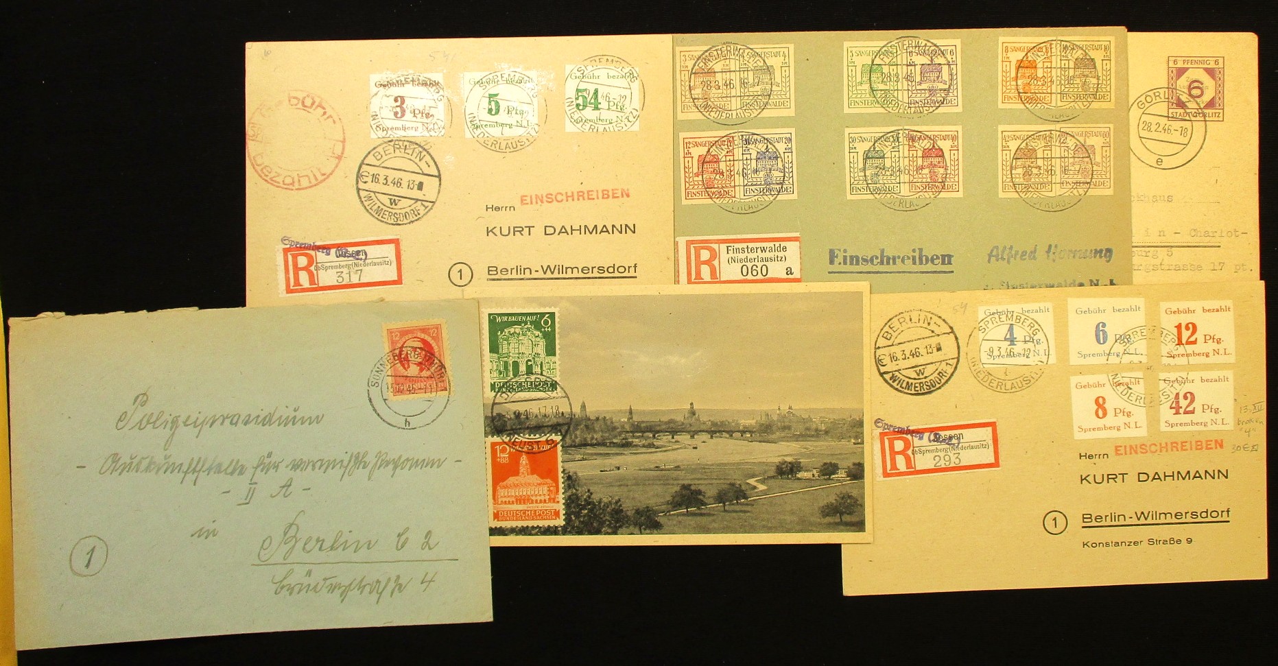 Germany Group of Soviet Zone Covers and Stationery Group 2 - Another diverse group 31 covers/postal stationery, postcard, and tied-to-piece 1945-6 Soviet occupation. Includes Arnsberg, Berlin, Finsterwalde, Glauchau, Görlitz,