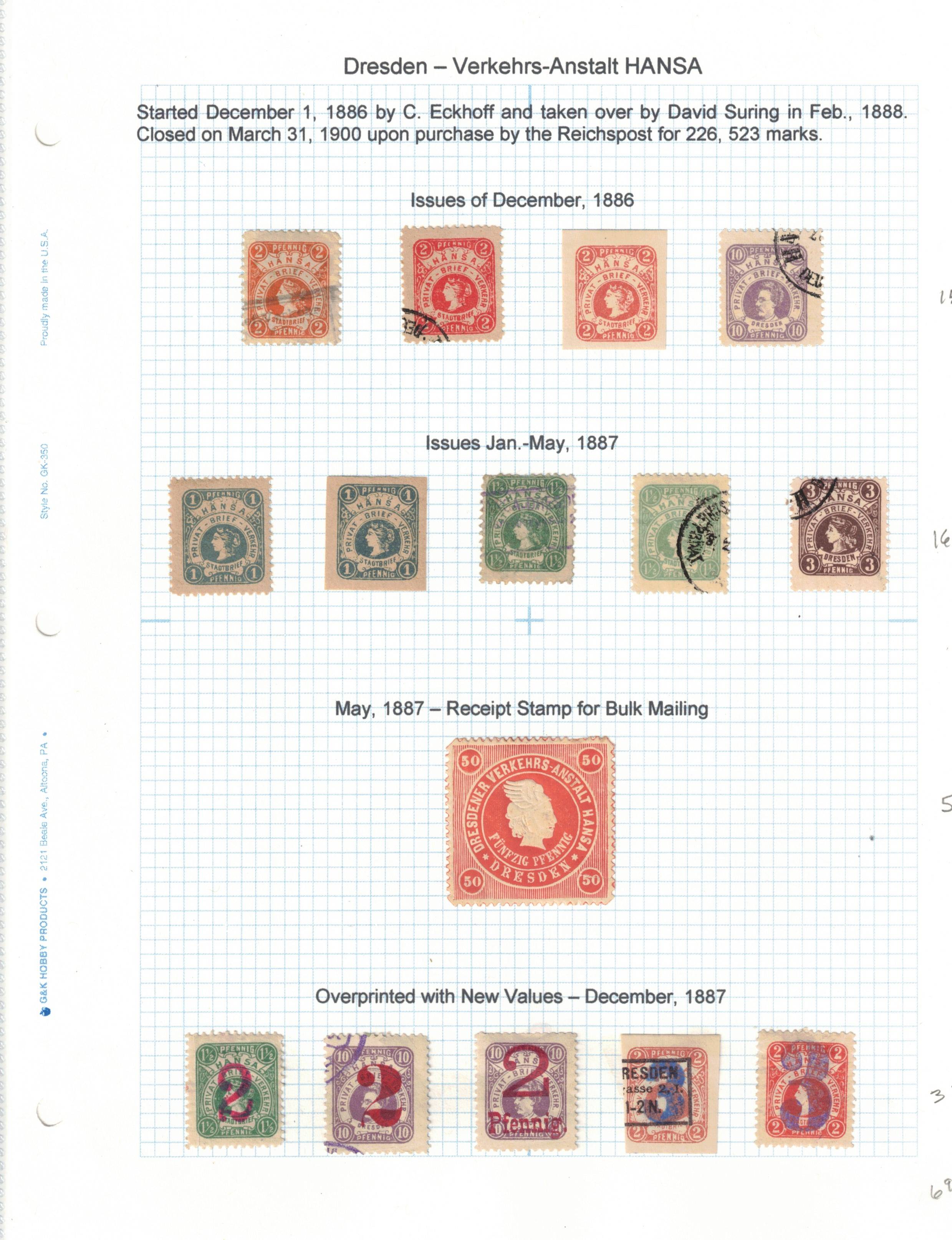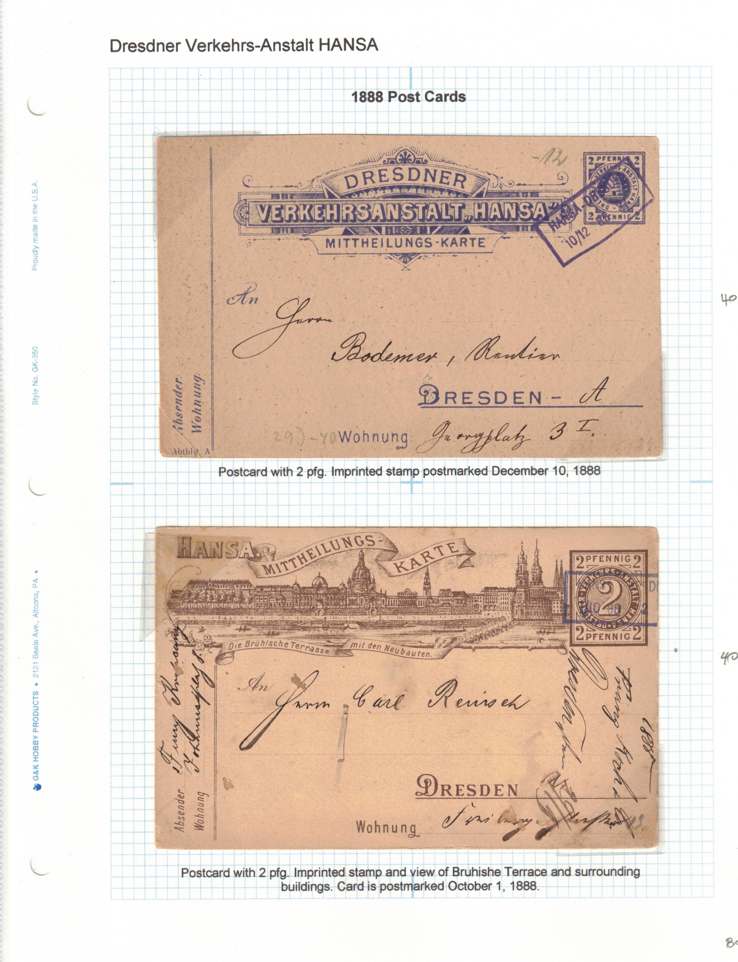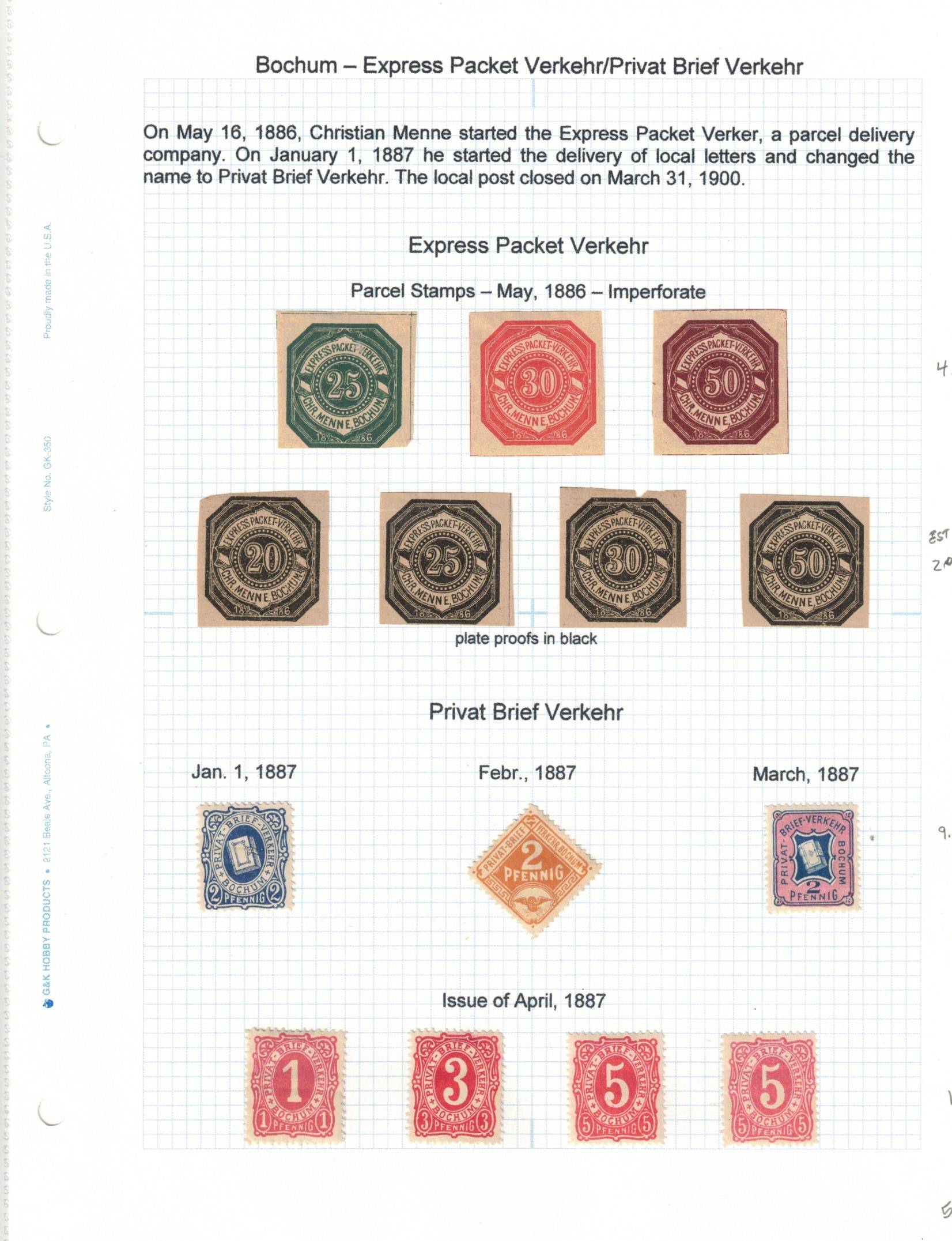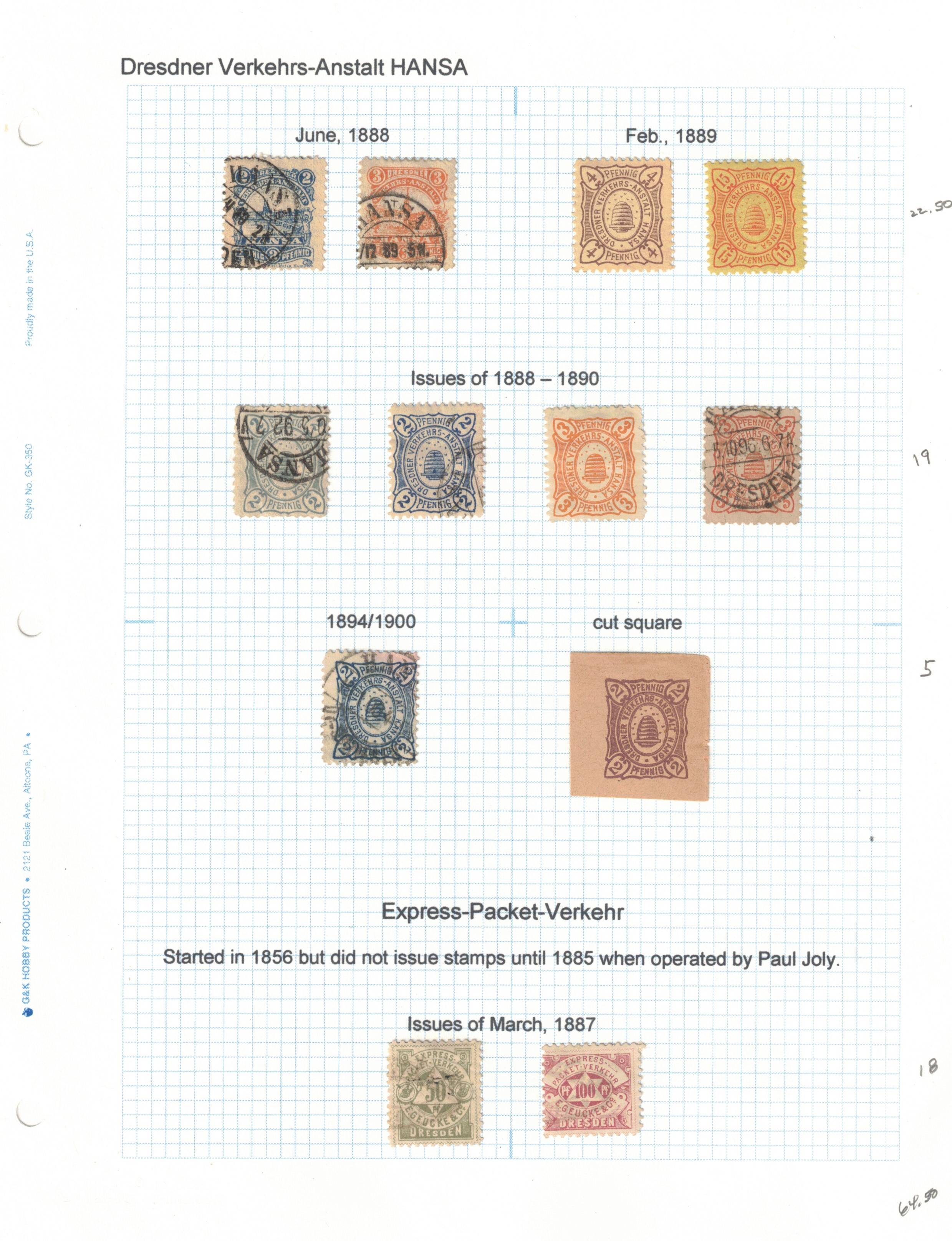 Bergedorf, Bochum, and Dresden Locals Stamp Collection, 1860-90's - 3 different local post collection of over 100 stamps, some cut squares, and 10 postal stationery pieces. Most of the value is Dresden, then Bochum, and lastly