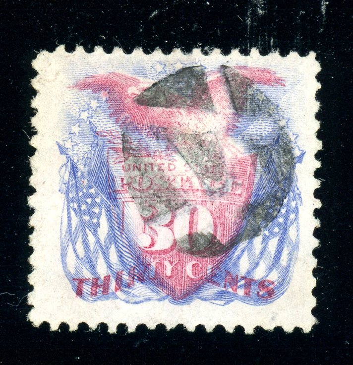 USA Scott 121 Used F-VF, 1869 30¢ Pictorial - Stamp with great color. Appears reperfed at left. F-VF. (SCV $450) (Image)