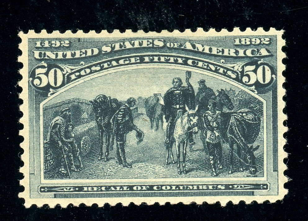 USA Scott 240 MH F-VF, 1893 50¢ Columbian - Well centered, previously hinged, and sound. (SCV $450) (Image)