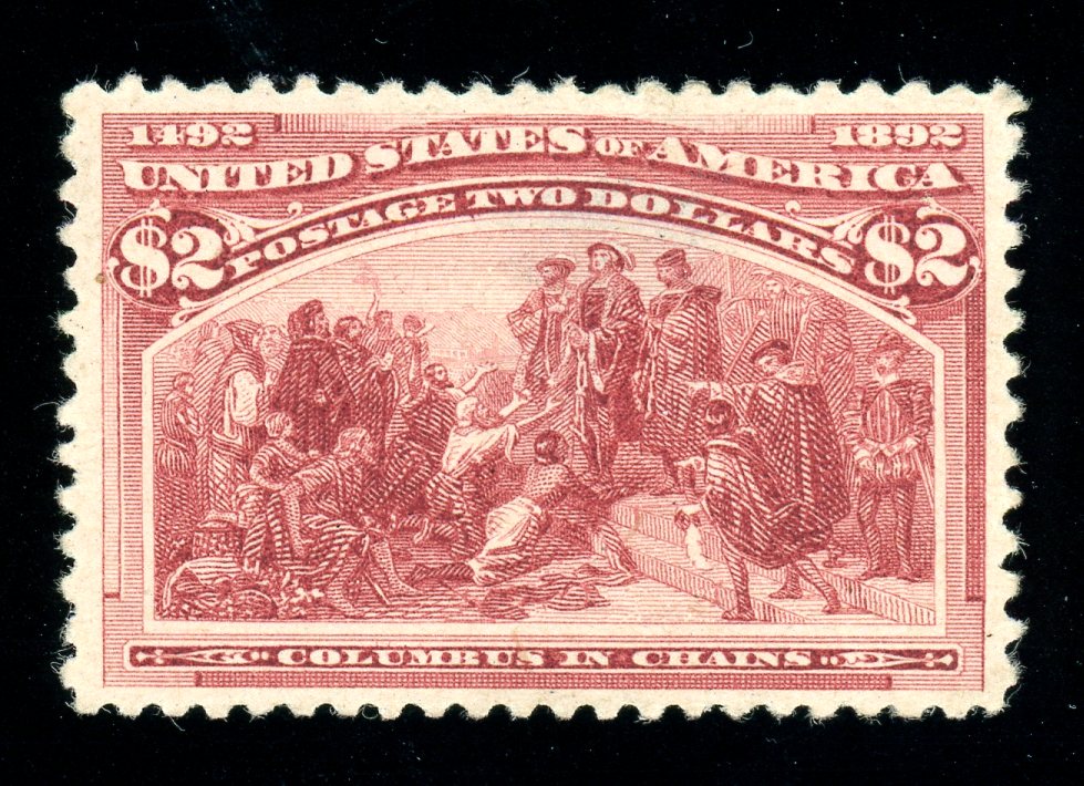 USA Scott 242 MH F-VF, $2 Columbian - OG with large thin at center likely from hinge removal. Nice appearing filler! (SCV $1100)