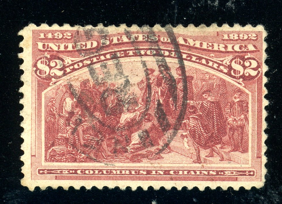 USA Scott 242 Used Fine+, 1893 $2 Columbian - Few blunt perfs lower right corner. Otherwise a sound stamp. Fine+. (SCV $550)