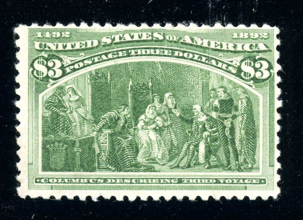 USA Scott 243 Unused Fine, $3 Columbian - Appears sound, without gum. Fine centering. (SCV $750) (Image)