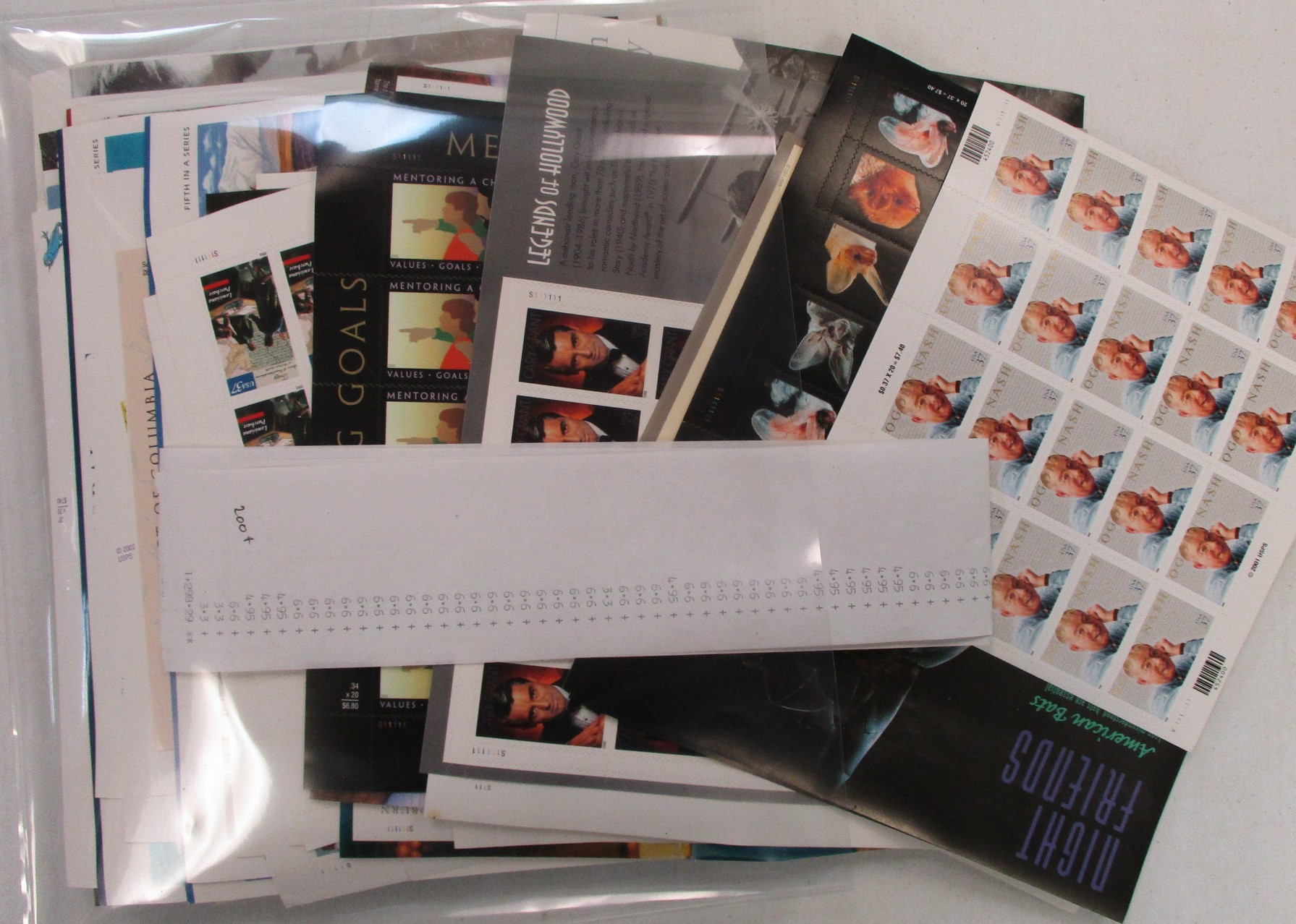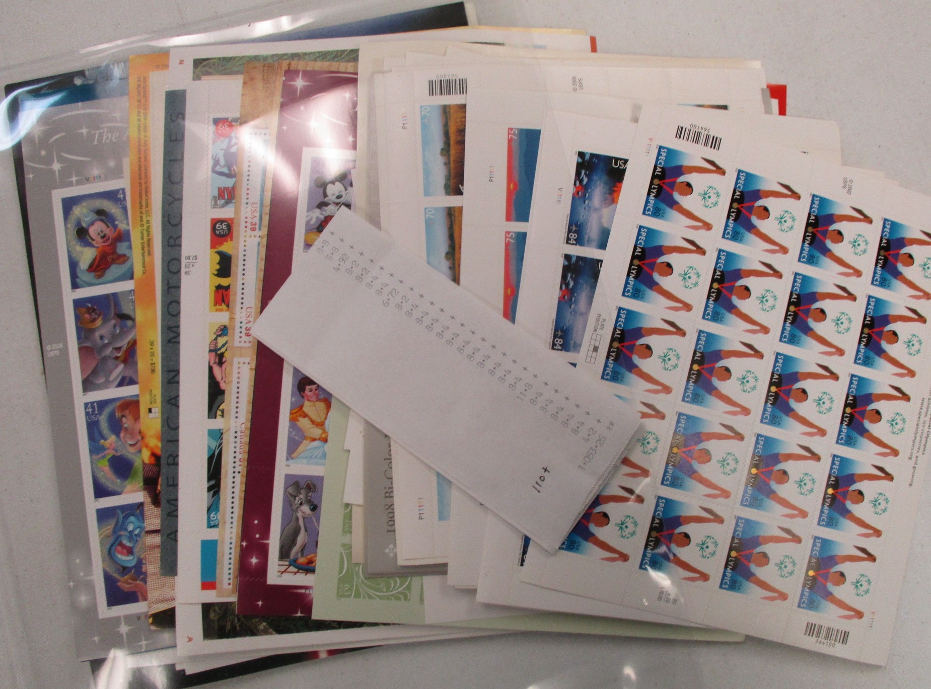 148 og imageUSA Mint Sheet Lot, All 39¢ to $1 Values - 110+ sheets, mostly different (few with duplication), mixed water activated and self adhesive. Tape included. Clean, collectable, or usable. (Face $1050) (Image)