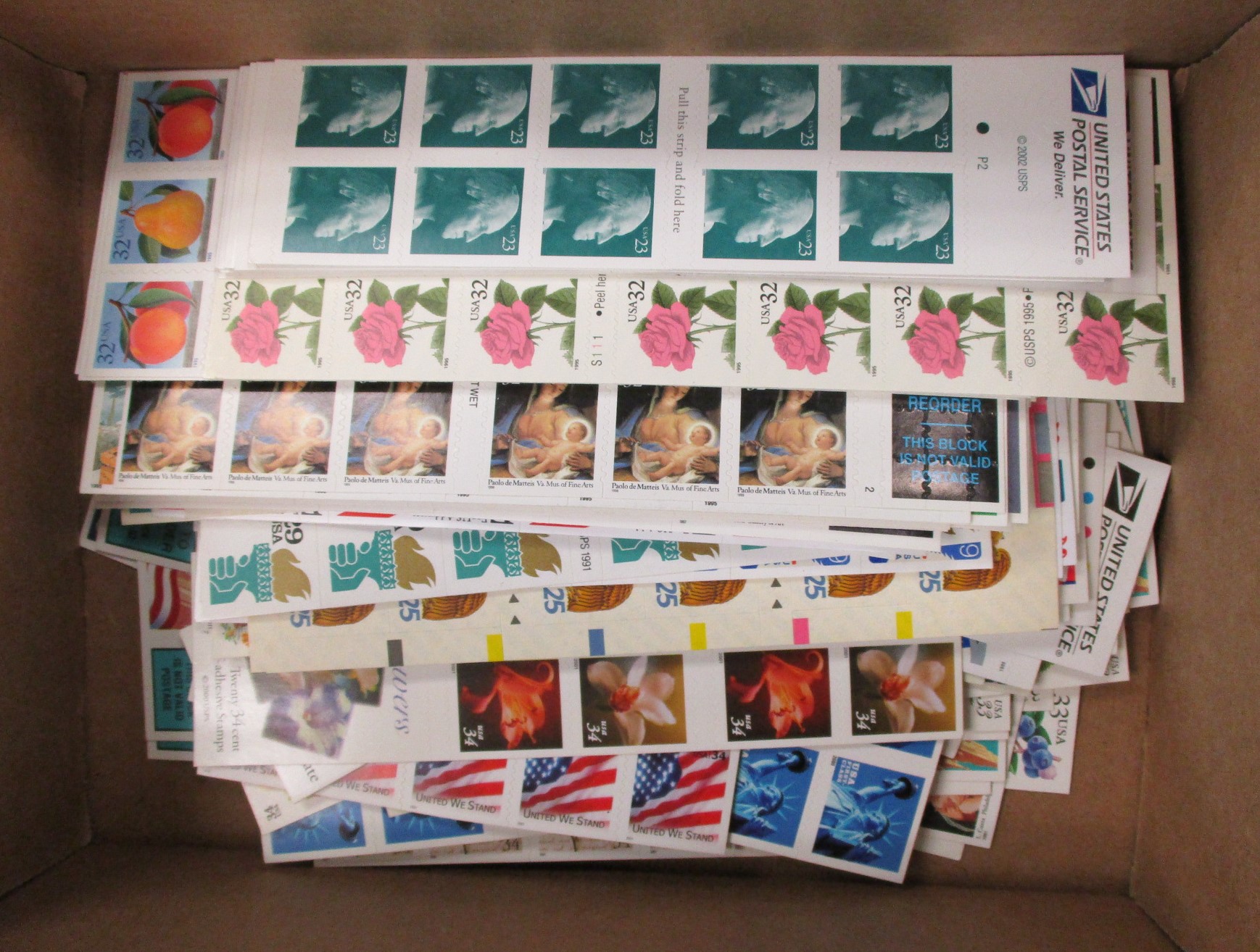 149 og imageUSA Self Adhesive Panes, 20¢ to 34¢ Values - About 150, mostly different self adhesive panes with stamp values ranging from 20¢ to 34¢. Clean, collectable, or usable. (Face $740) (Image)