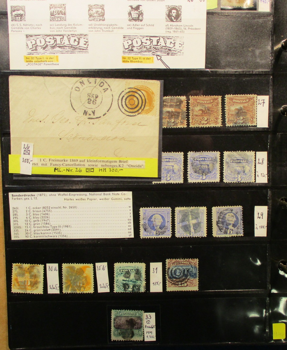 154 imageUSA Dealer Stockbook of Classics to 1930's - Several 100 stamps in an cased stockbook (of German origin with likely Michel catalog numbers) beginning with imperf issues (1¢, 2¢, 5¢ and 10¢) going to the 1922-5 Bureau issues. Includes early airmails, special delivery, parcel post, dues, and more. Spotted a couple classic folded covers (stamped/stampless) from early to mid-1920s and also a good representation of bureau W-F pre-cancels and later 1922-5 bureau series. Expect mixed condition. (Est $400-500) (Image) (Image2) (Image3) (Image4) (Image5) (Image6) (Image7) (Image8) (Image9) (Image10) (Image11) (Image12) (Image13) (Image14) (Image15) (Image16) (Image17) (Image18) (Image19) (Image20) (Image21) (Image22) (Image23) (Image24) (Image25) (Image26) (Image27) (Image28) (Image29) (Image30) (All Images)