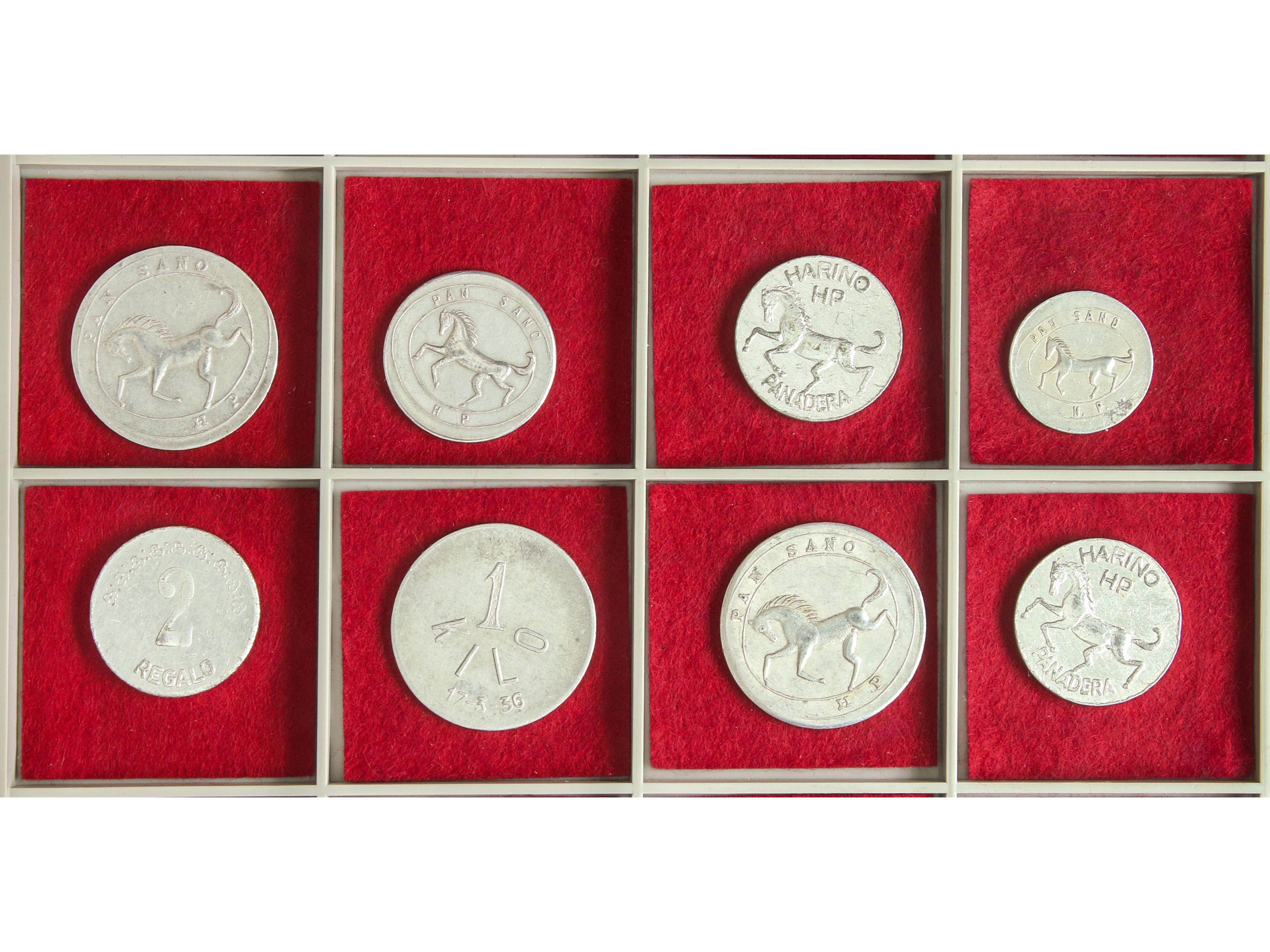 Lote 8 fichas con valores 10 Centimos 1/2, 1 Kilo (3). 1, 2, 3 Regalo. PAN SANO HP (Harina Panadera). BILBAO (Vizcaya). Al. MBC- a EBC-. (Image1)