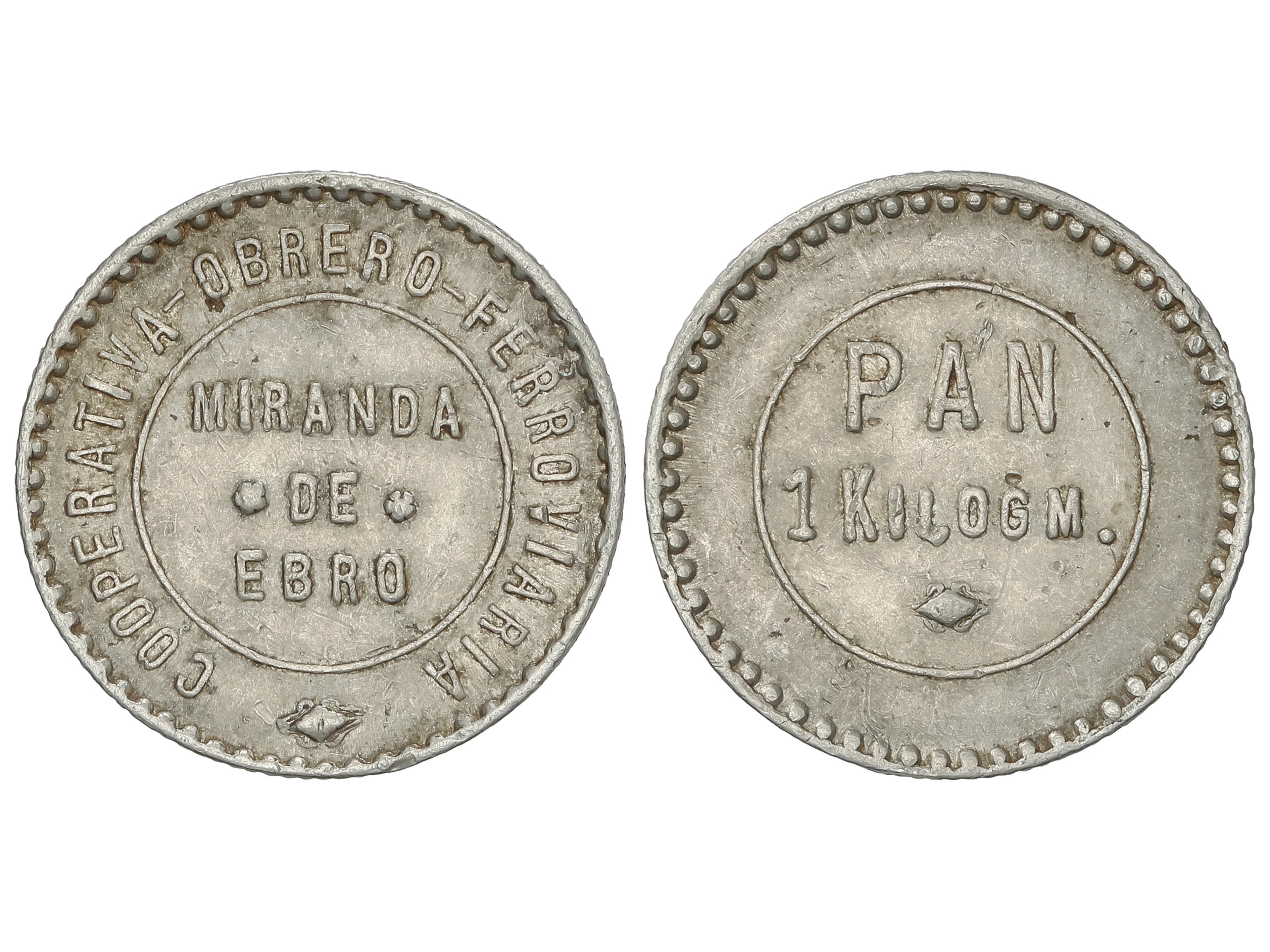 1 Kilo de Pan. COOPERATIVA OBRERO FERROVIARIA. MIRANDA DE EBRO (Burgos). 1,07 grs. Al. MBC+. (Image1)