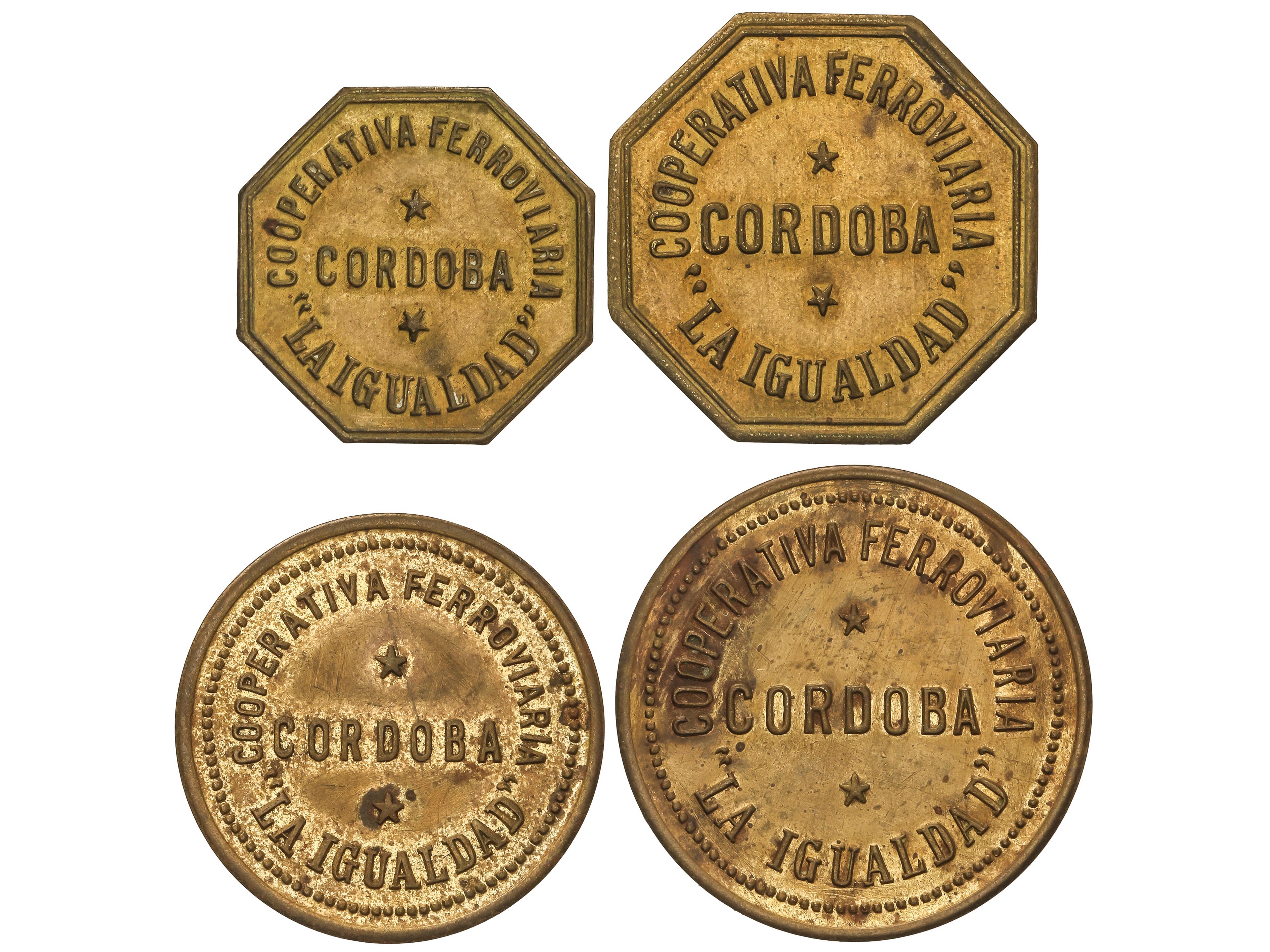 Lote 4 fichas 1/2 y 1 Kilo (3). COOPERATIVA FERROVIARIA LA IGUALDAD. CÓRDOBA. Latón. MBC+ a EBC. (Image1)