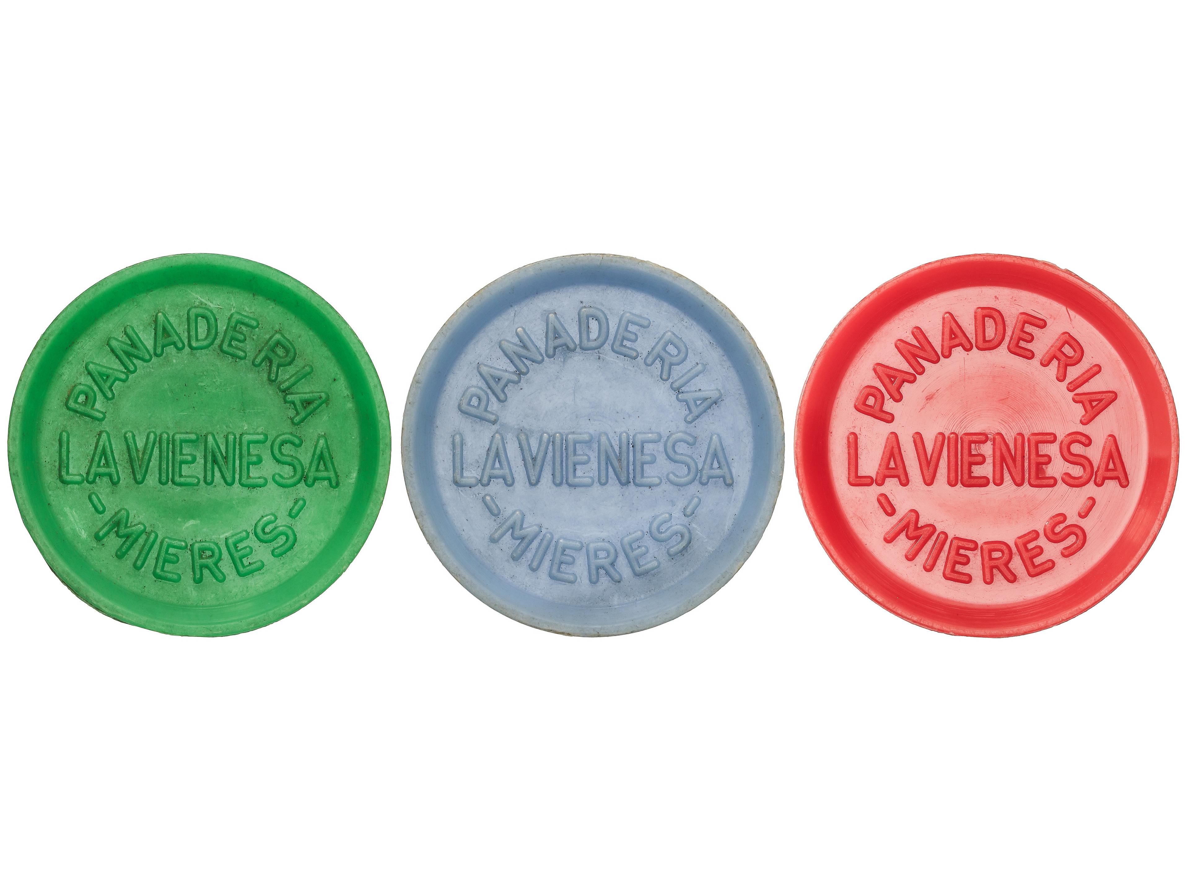 Lote 3 fichas 1/4, 1/2, 1 Kilo. PANADERÍA LA VIENESA. MIERES (Asturias). Baquelita. EBC+. (Image1)