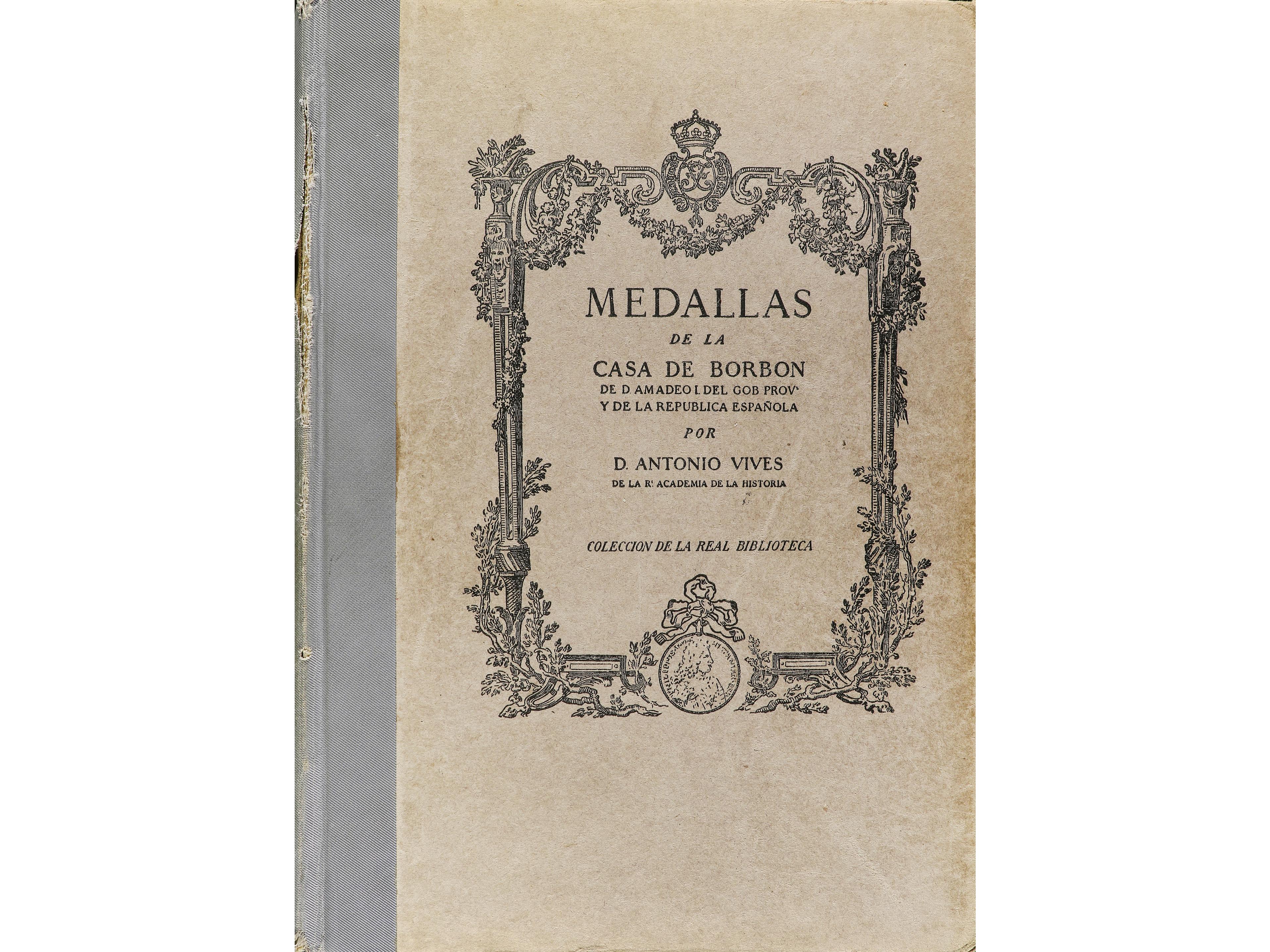 Vives, Antonio. MEDALLAS DE LA CASA DE BORBON DE D AMADEO I DEL GOB PROV Y DE LA REPUBLICA ESPAÑOLA. Madrid 1916. XXIV+533 págs.+ 1 h.+74 láminas. Edición de 600 ejemplares. (Lomera craquelada y rota). Muy escaso.