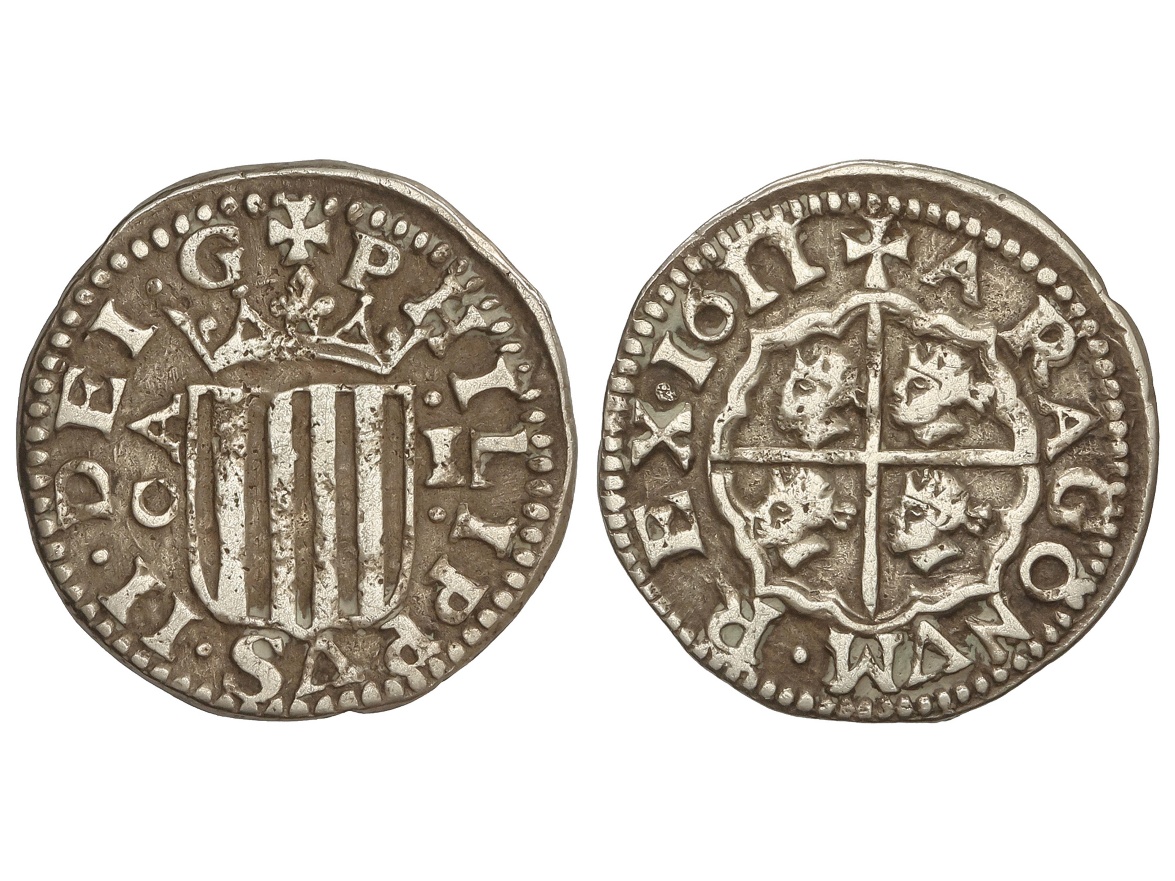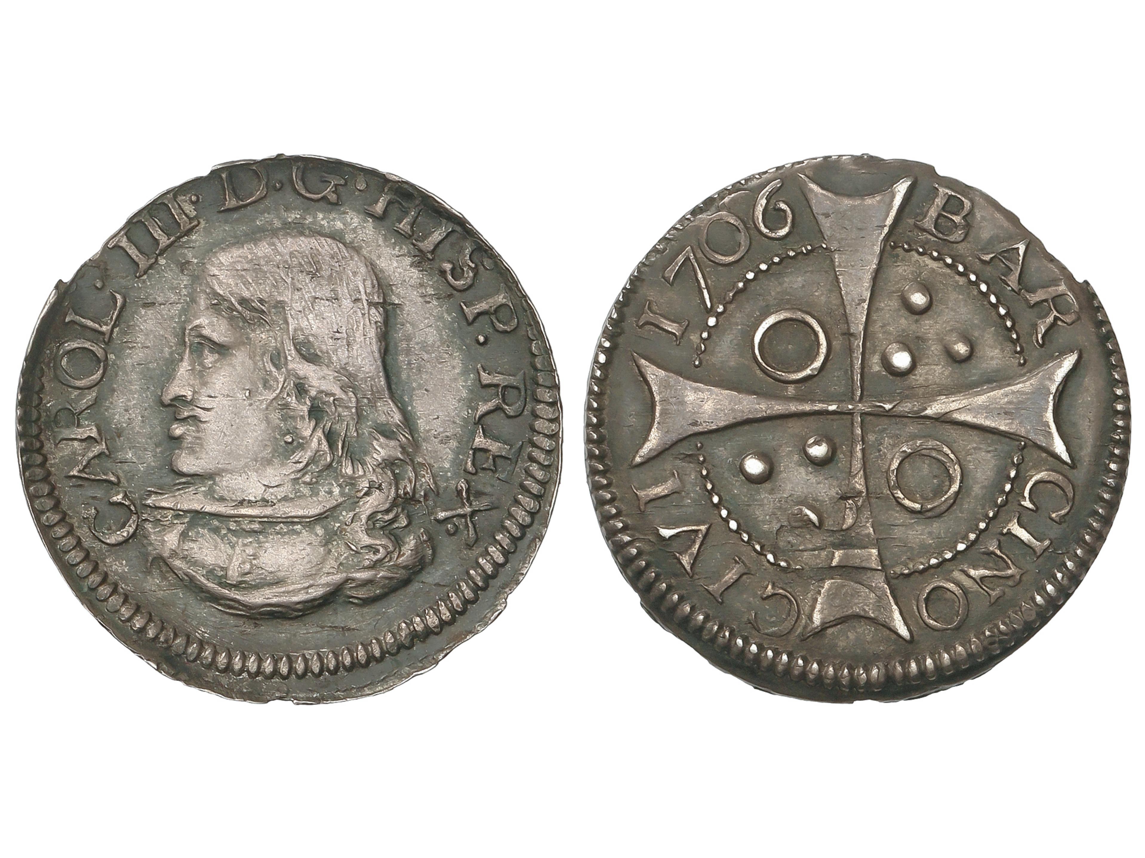 256 imageCroat. 1706. BARCELONA. 2,26 grs. Anillos en 1º y 4º cuartel. Preciosa pátina de colección antigua. AC-20. EBC. (Image1)