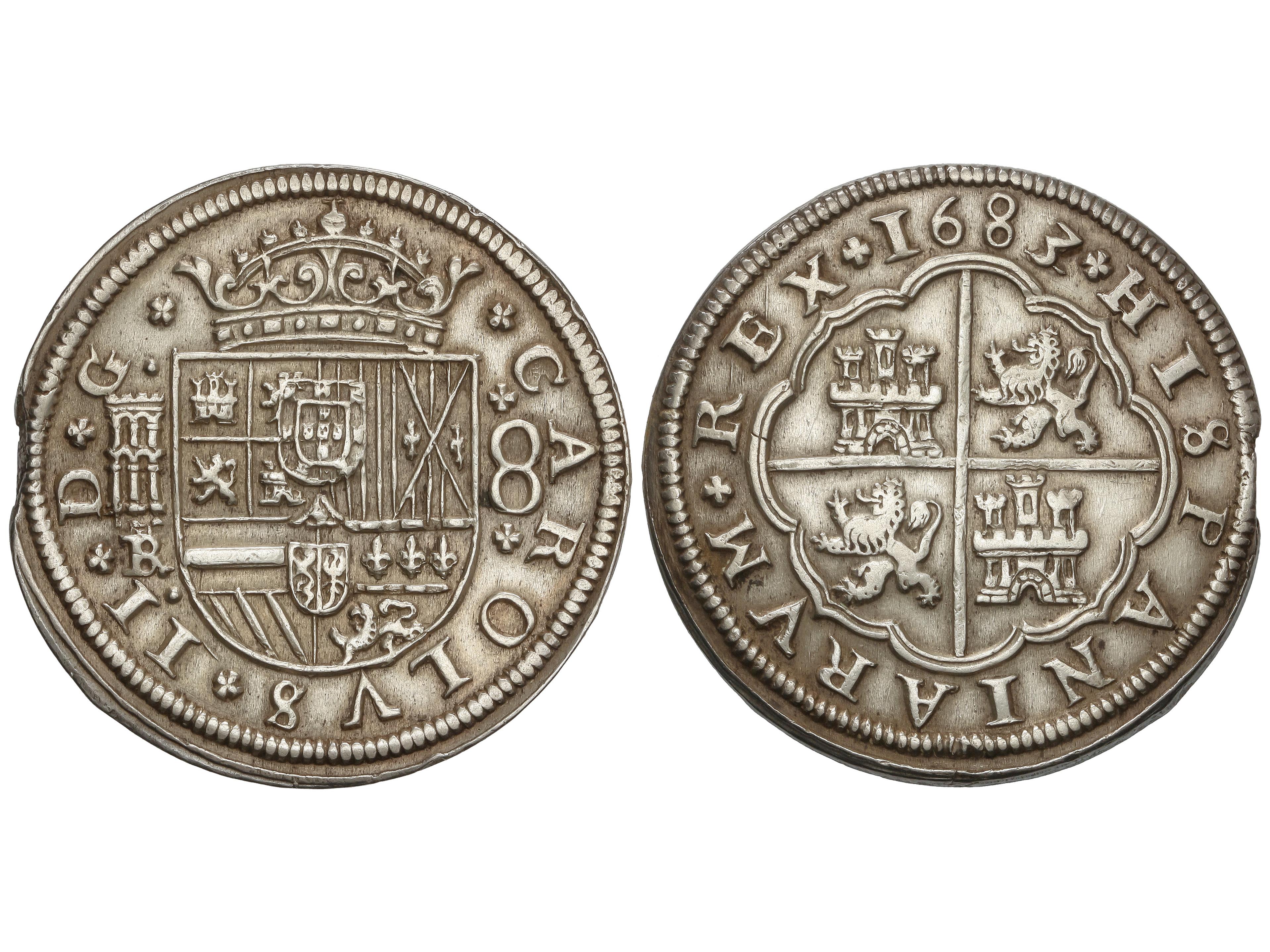 254 image8 Reales. 1683/2. SEGOVIA. B.R./M. 25,73 grs. (Final de riel). MUY ESCASA. AC-764. EBC-. (Image1)