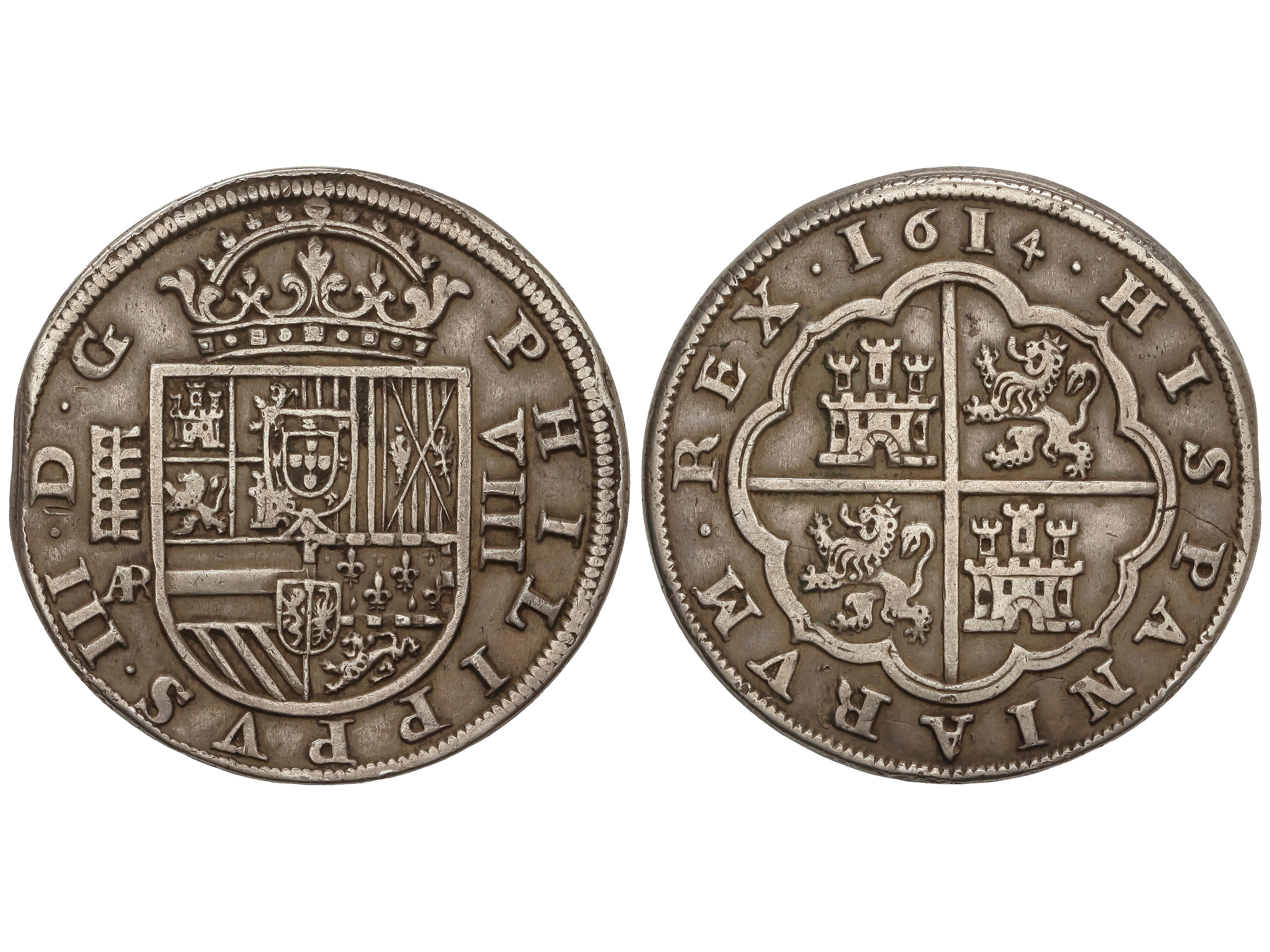 249 image8 Reales. 1614. SEGOVIA. AR. 26,64 grs. (Pequeña parte del canto final de riel). RARA. AC-946. MBC+. Ex Aureo & Calicó 361 - 18 febrero 2021, n. 321. (Image1)