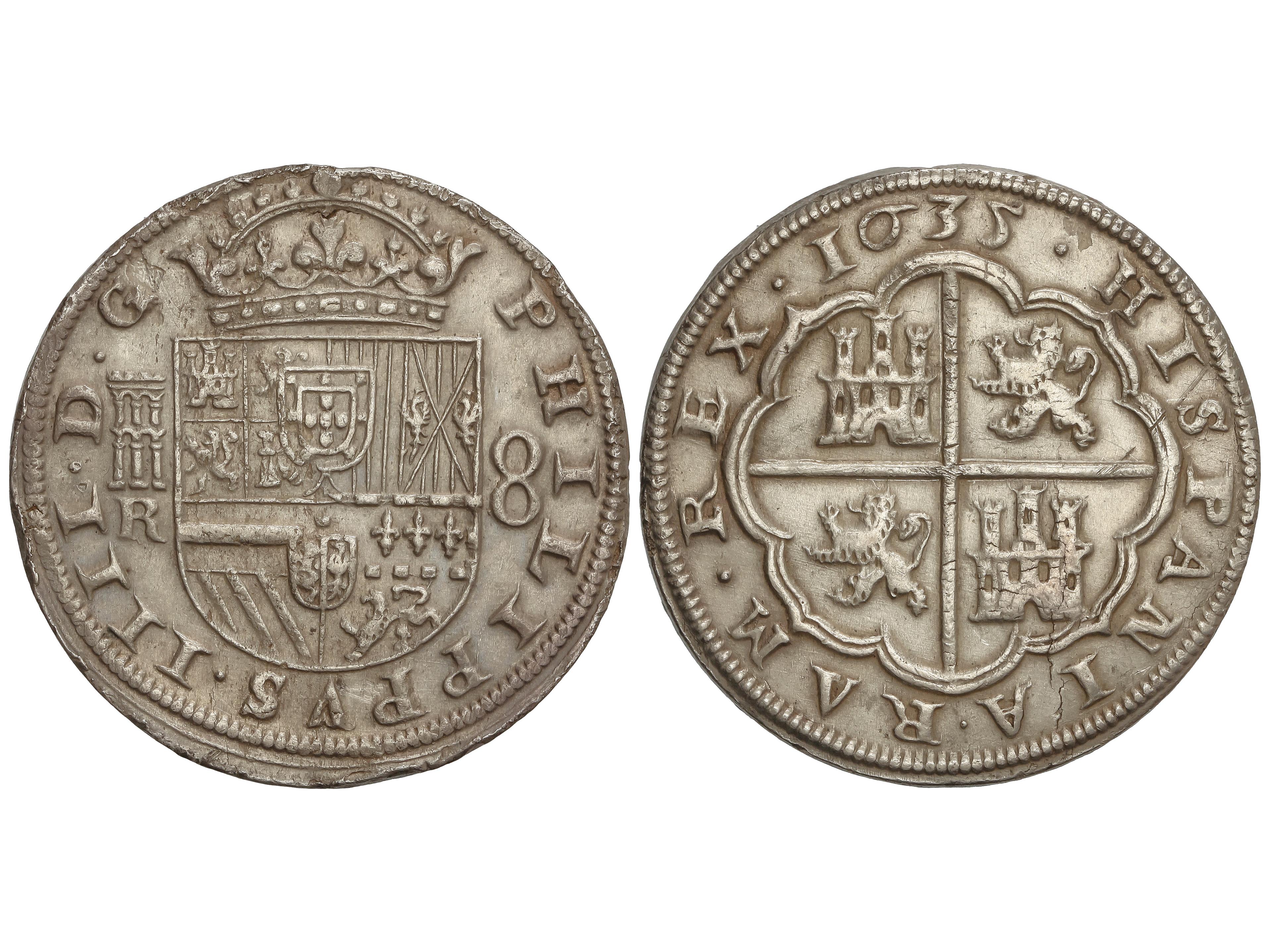 251 image8 Reales. 1635. SEGOVIA. R. 26,84 grs. Leyenda: HISPANIARAM. (Leves hojitas). MUY ESCASA. AC-1608. EBC-. Ex Aureo & Calicó 367 - 02 junio 2021, n. 2269. (Image1)
