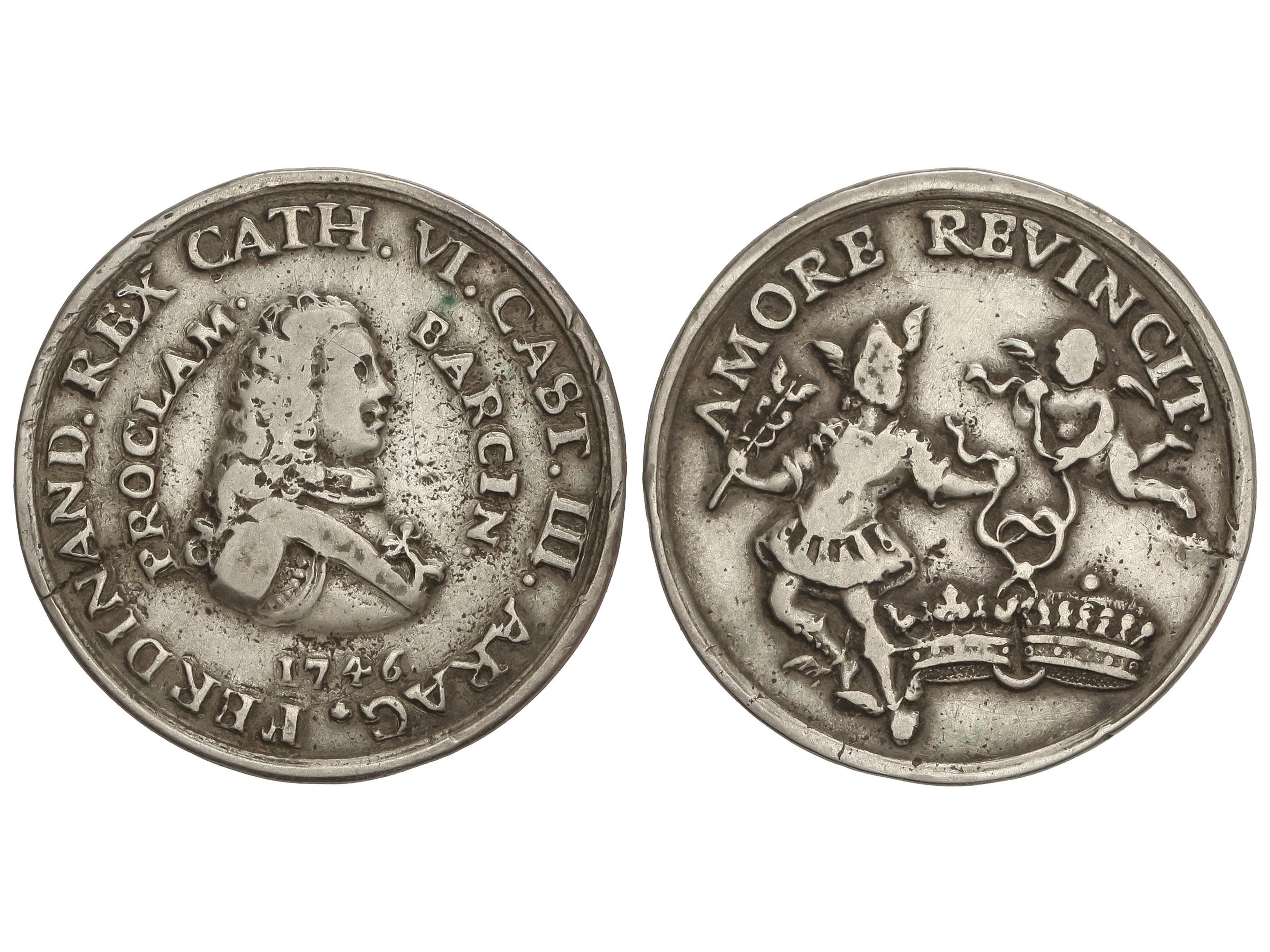 277 imageMedalla Proclamación. 1746. BARCELONA. 4,83 grs. AR fundida. Ø 27 mm. ESCASA. He-1. MBC. (Image1)