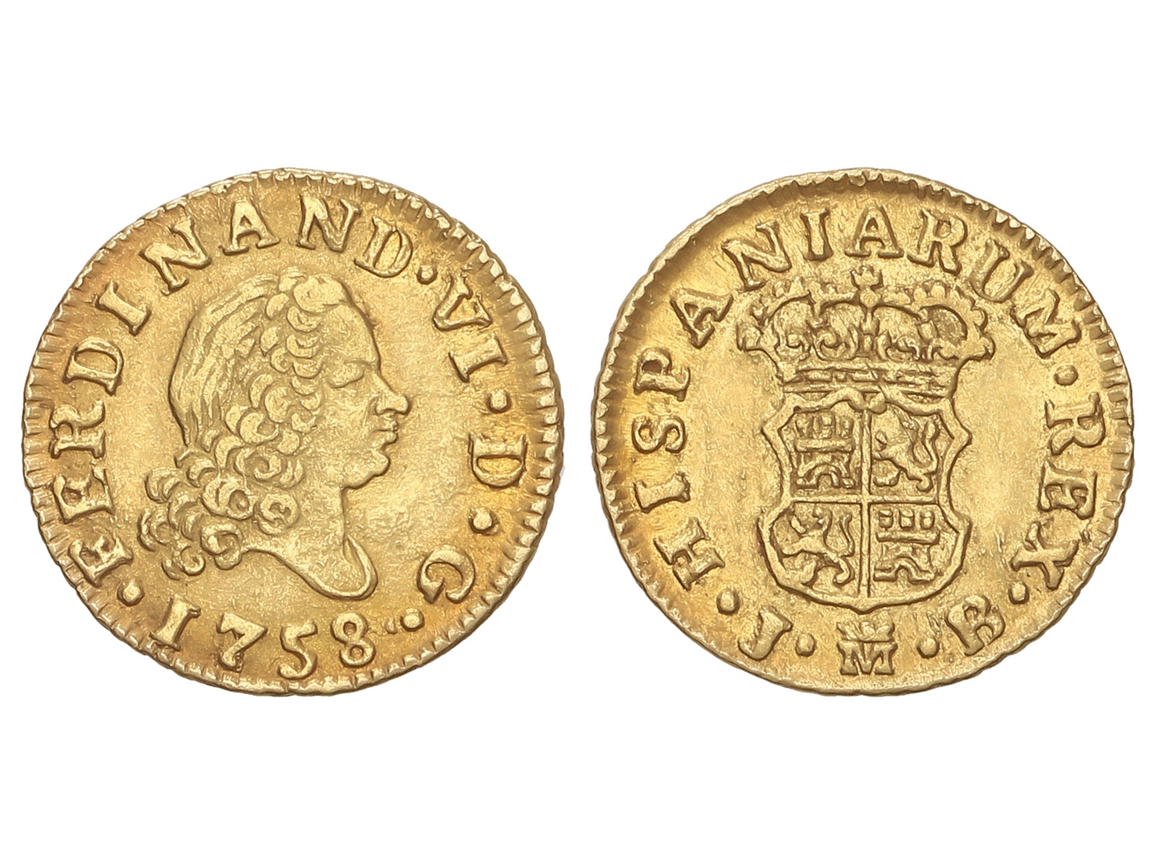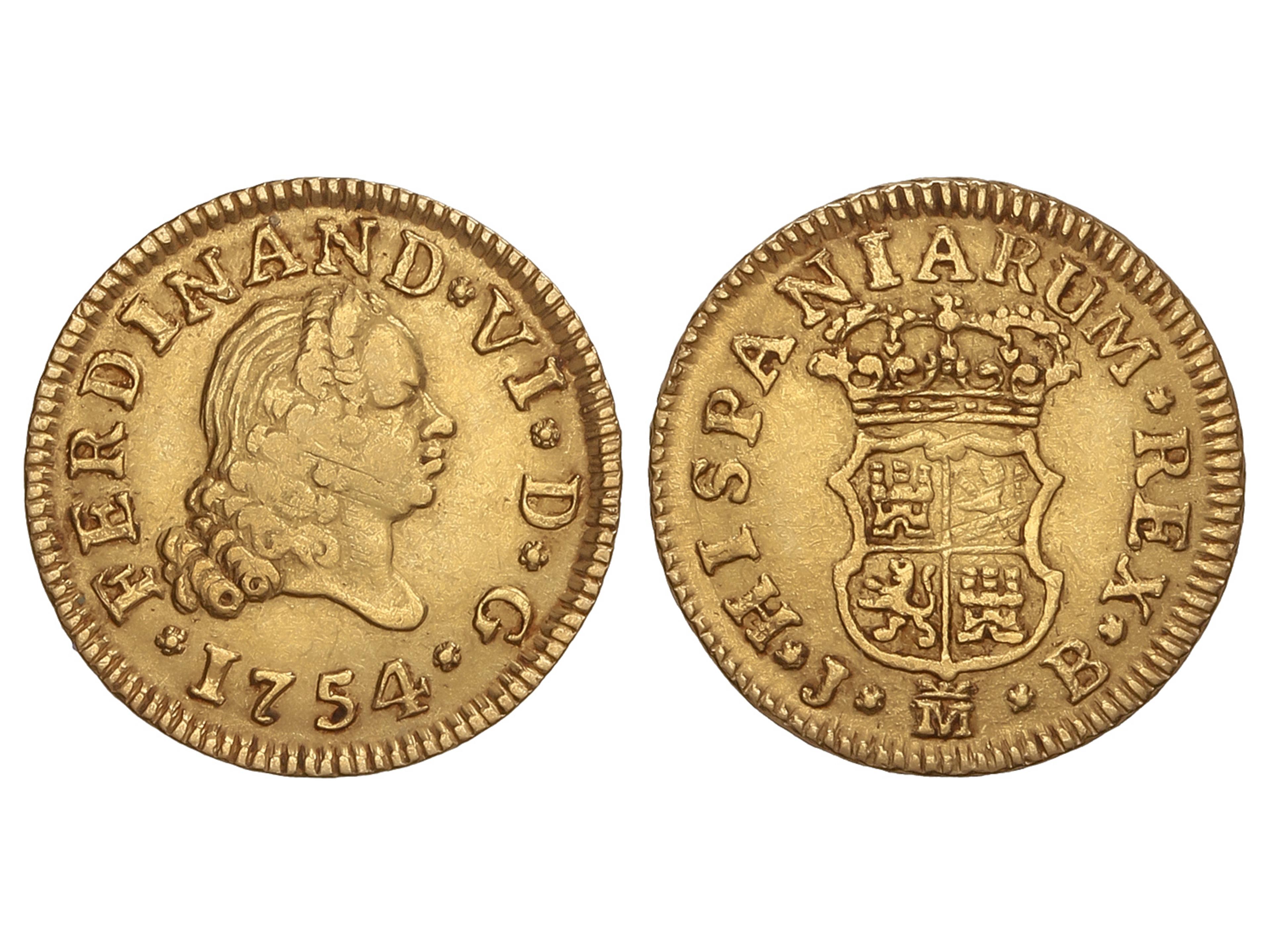 273 image1/2 Escudo. 1754. MADRID. J.B. 1,77 grs. (Ínfimas rayitas de ajuste). AC-557. (MBC+). (Image1)