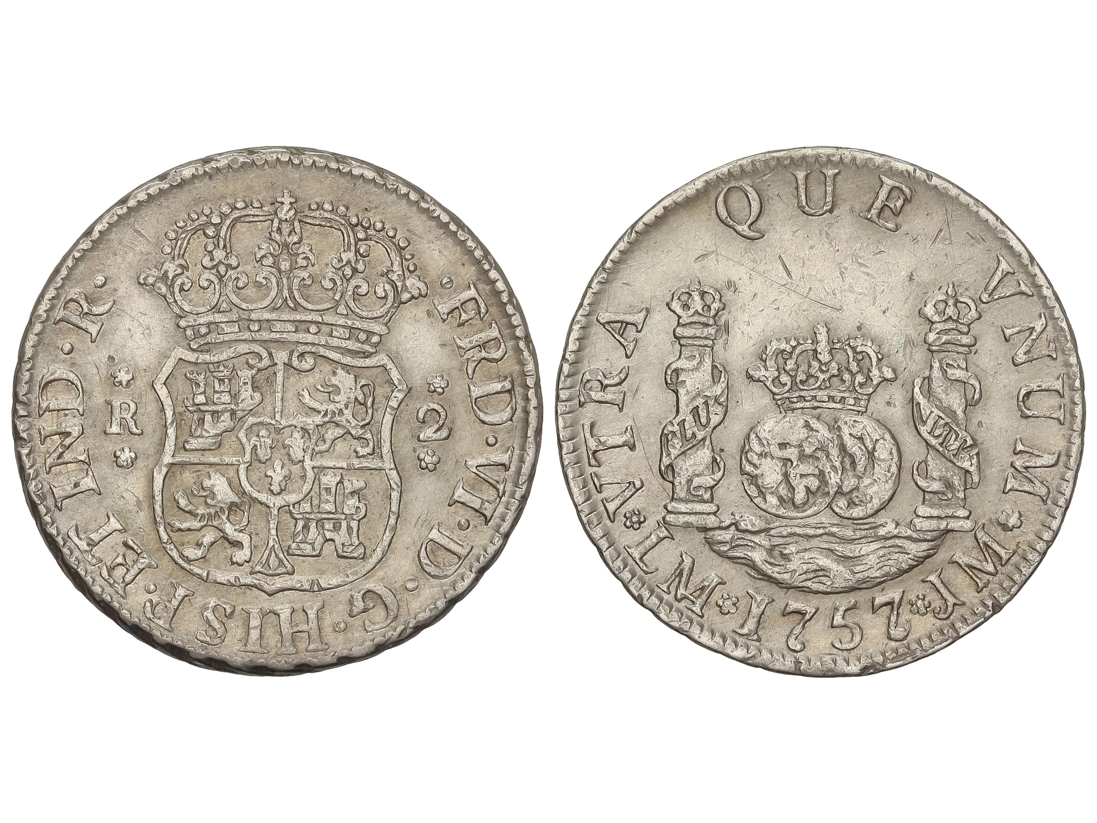 269 image2 Reales. 1757/6. LIMA. J.M. 6,65 grs. Columnario. (Pequeños golpecitos y rayitas). AC-274. MBC. (Image1)