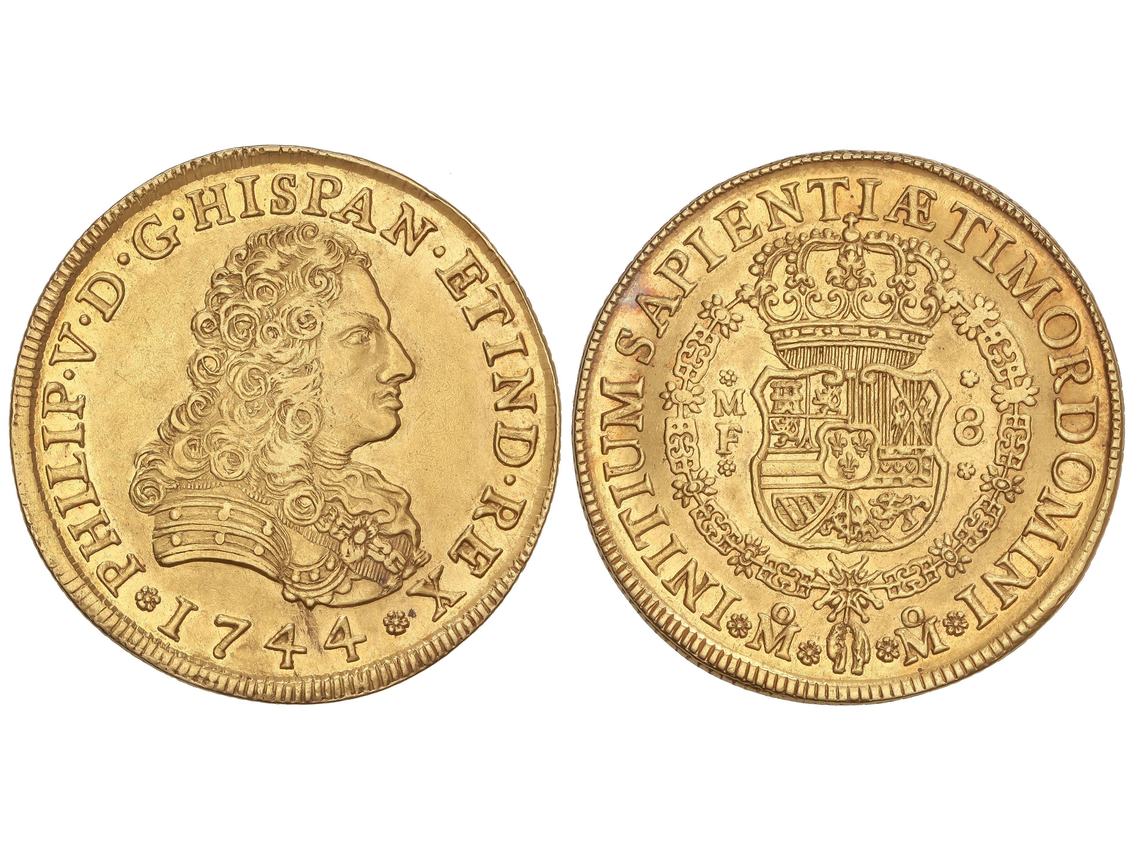 266 image8 Escudos. 1744. MÉXICO. M.F. 26,95 grs. AU. RARA. AC-2249; XC-442. MBC+. Ex Soler y Llach y Martí Hervera 1079 - 17 diciembre 2013, n. 236. (Image1)