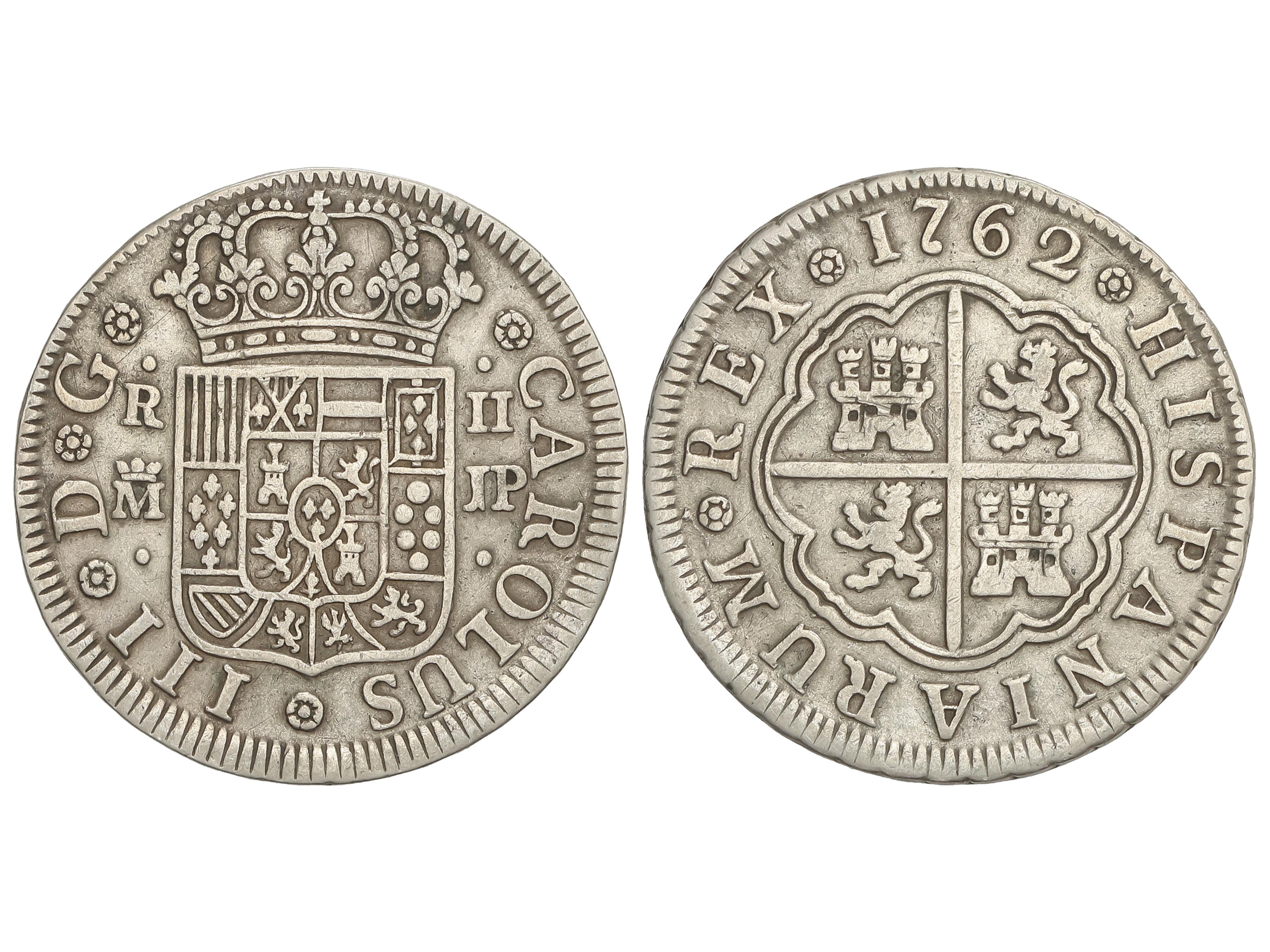280 image8 Reales. 1762. MADRID. J.P. 26,80 grs. Pátina oscura. AC-1061. EBC-. Ex Soler & LLach `Colección Plvs Vltra´ - 28 octubre 2021, n. 2080. (Image1)