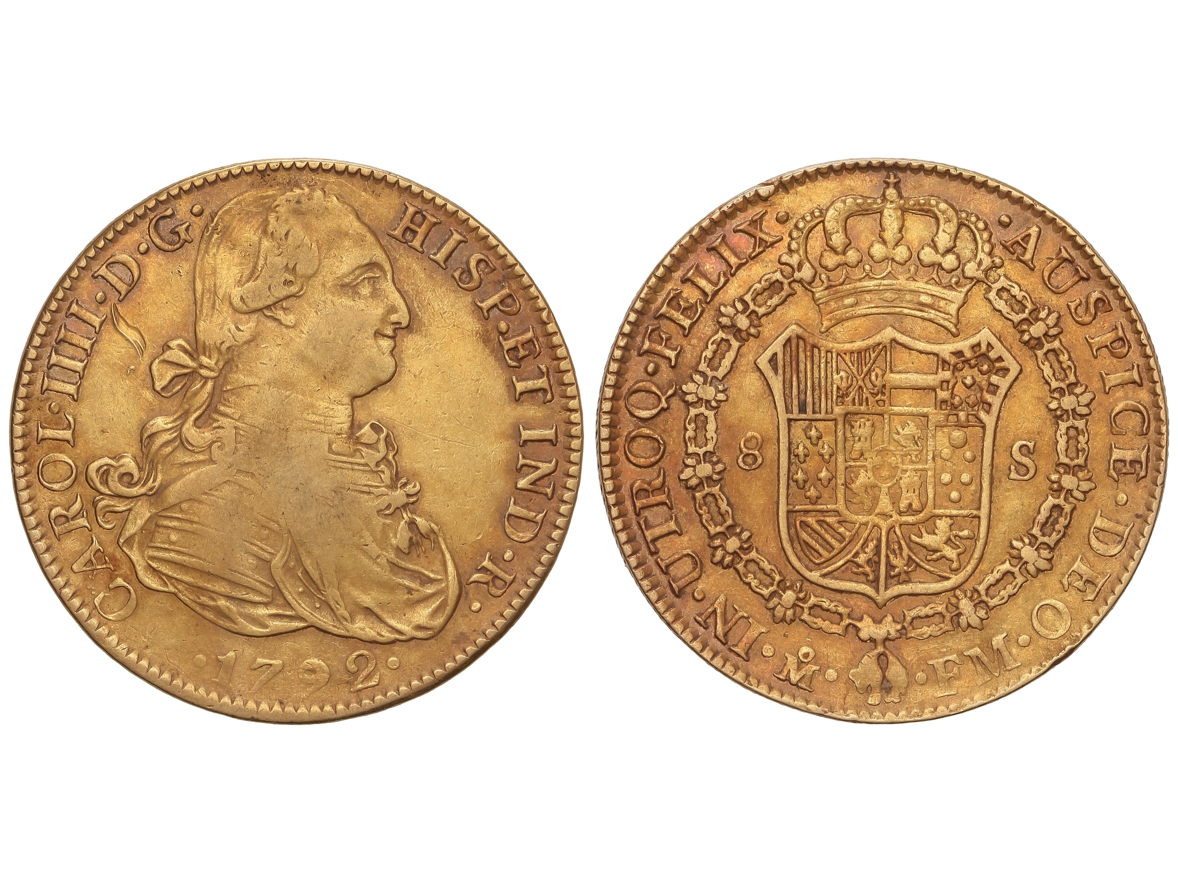 Escudos. 1792. MÉXICO. F.M. 26,83 grs. (Rayas en anverso). AC-1631; XC-1020. MBC+. (Image1)