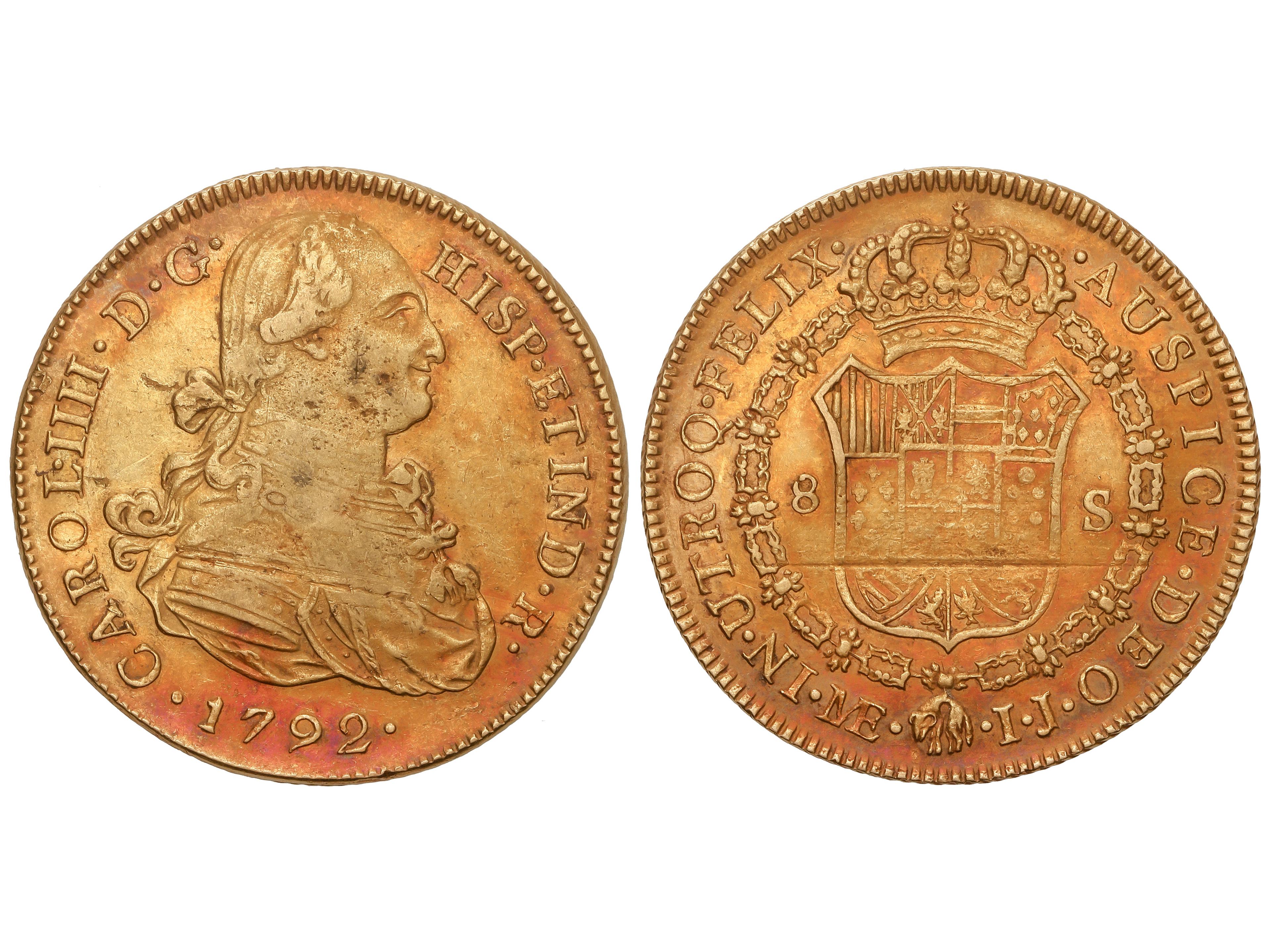Escudos. 1792. LIMA. I.J. 27,15 grs. (Rayitas). Leve pátina irisada irregular. AC-1591; XC-982. MBC. (Image1)