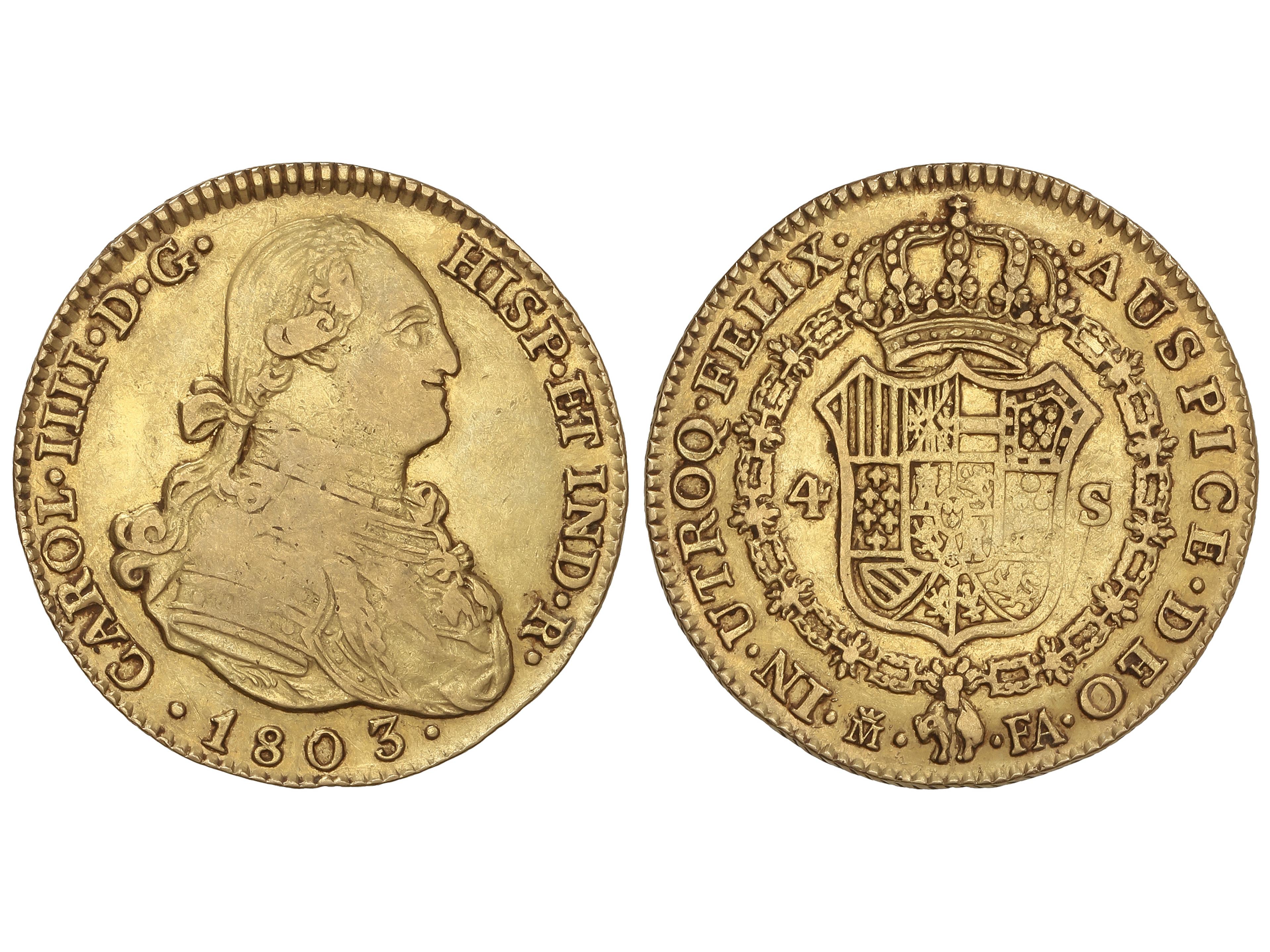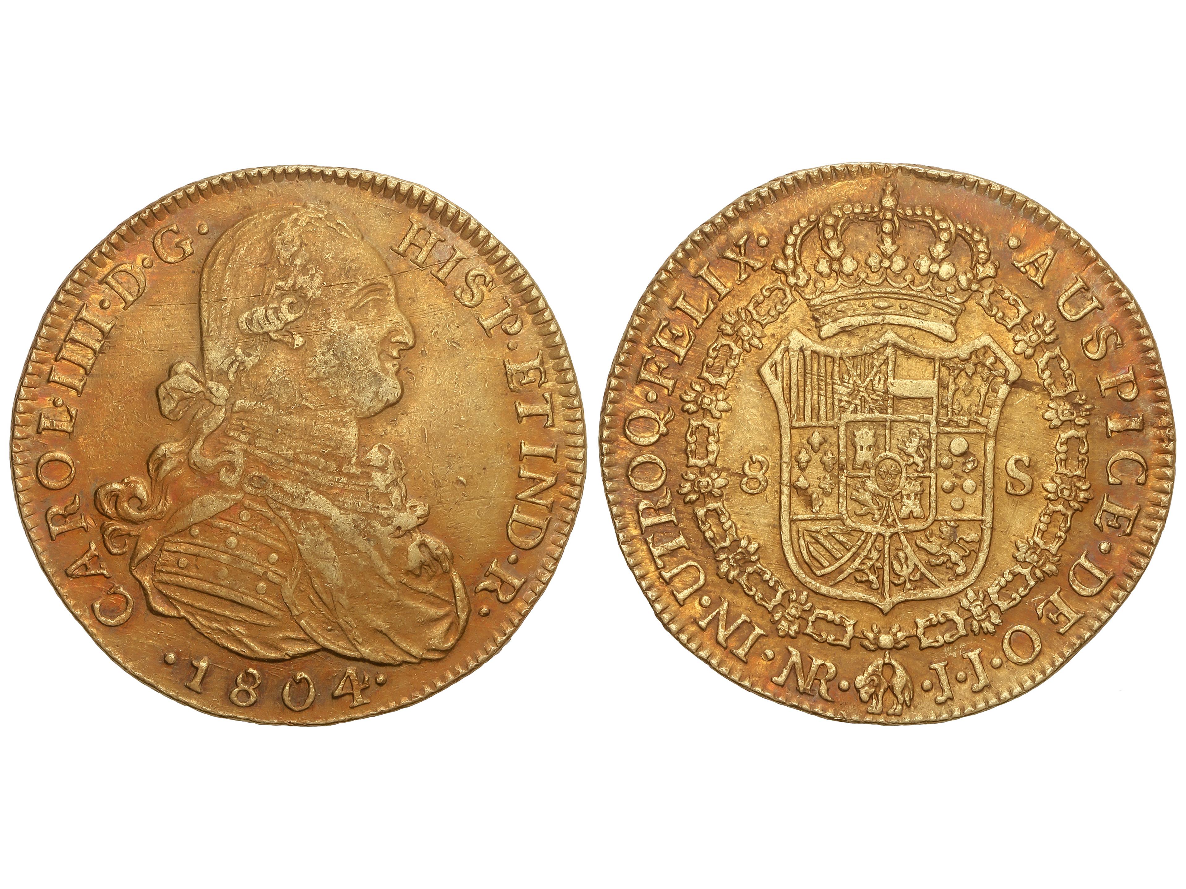 Escudos. 1804/3. NUEVO REINO. J.J. 26,95 grs. (Posiblemente ha estado en aro). AC-1743; XC-1141. MBC. (Image1)