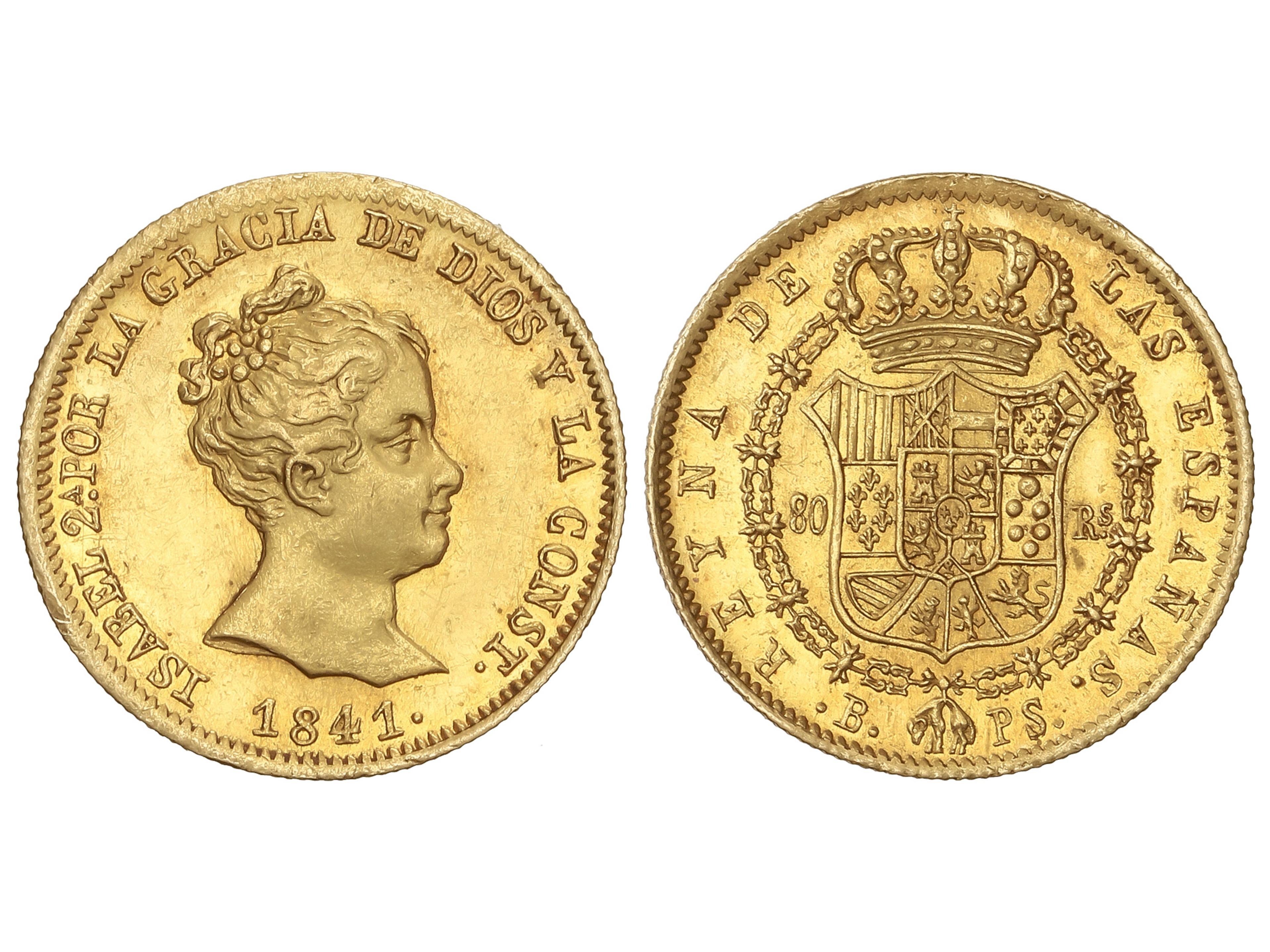 80 Reales. 1841. BARCELONA. P.S. 6,75 grs. (Ínfimas rayitas). Brillo original. AC-707. EBC/EBC+. (Image1)