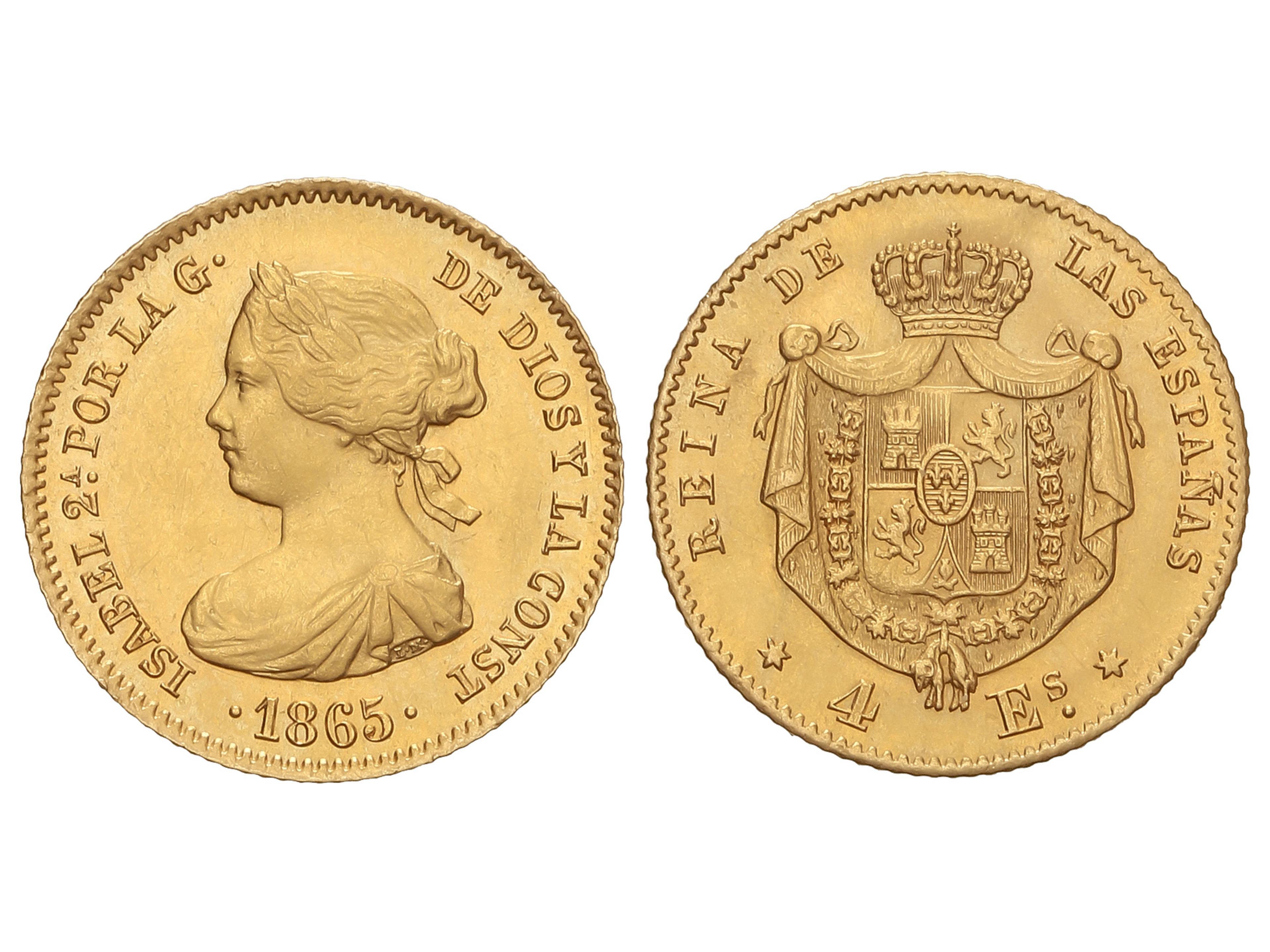 Escudos. 1865. MADRID. 3,36 grs. (Ínfimas rayitas). AC-688. EBC-. Ex Áureo & Calicó `O´Callaghan´ - 10 noviembre 2016, n. 475. (Image1)