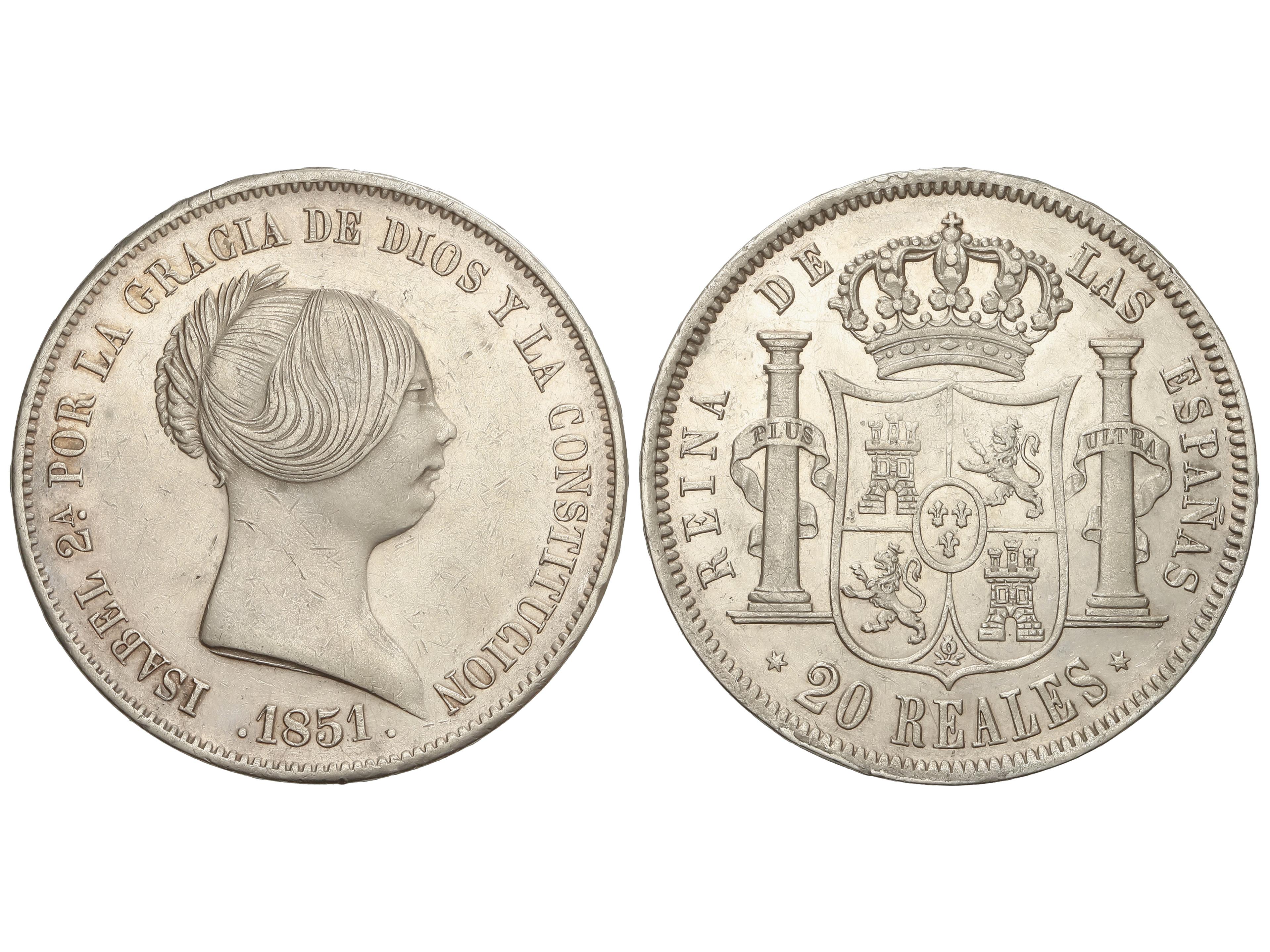 20 Reales. 1851. MADRID. 26,20 grs. (Pequeños golpecitos y rayitas, algunos en canto). AC-593. MBC+/EBC-. (Image1)