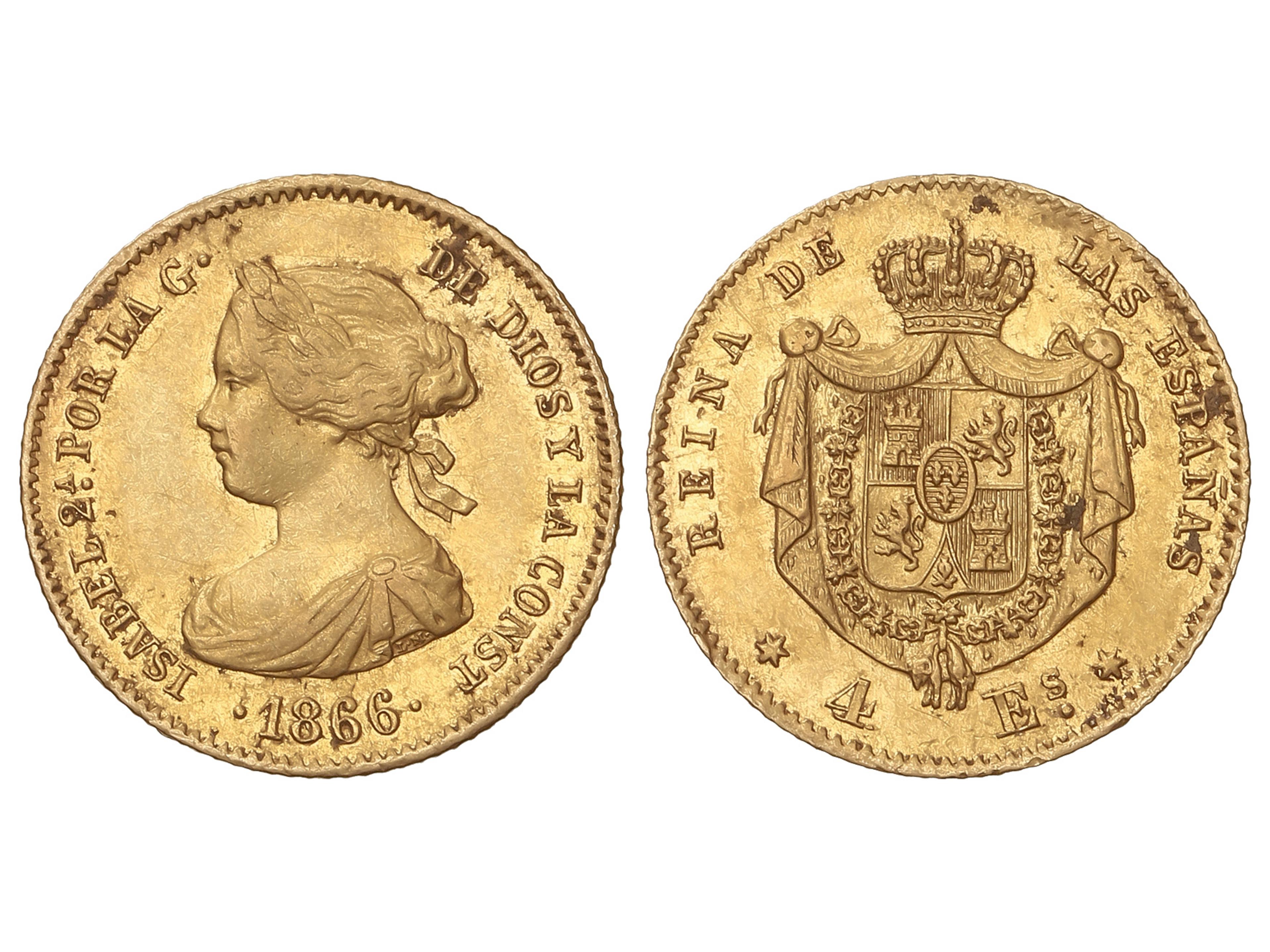 Escudos. 1866. MADRID. 3,35 grs. (Leves concreciones). Restos de brillo original. AC-689. MBC+/EBC-. (Image1)