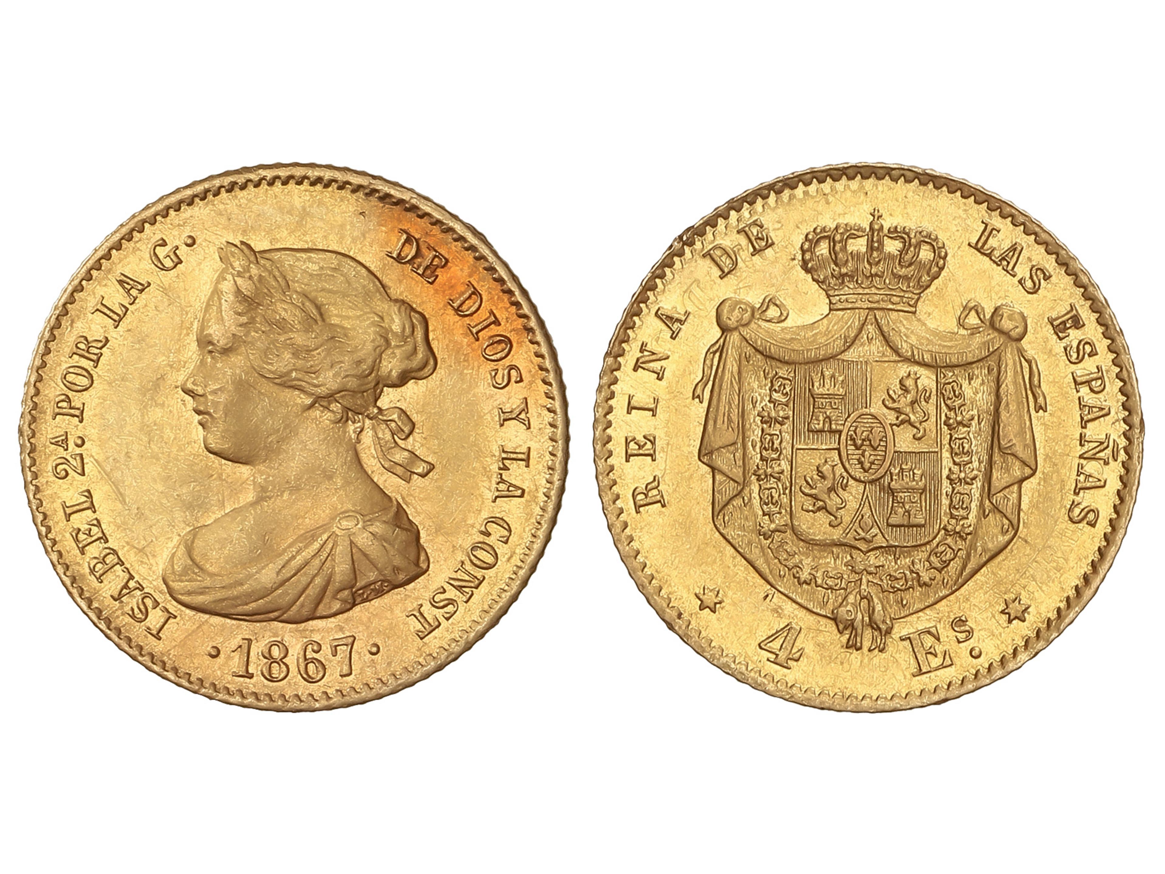 Escudos. 1867. MADRID. 3,34 grs. Restos de brillo original. AC-691. EBC-/EBC. (Image1)