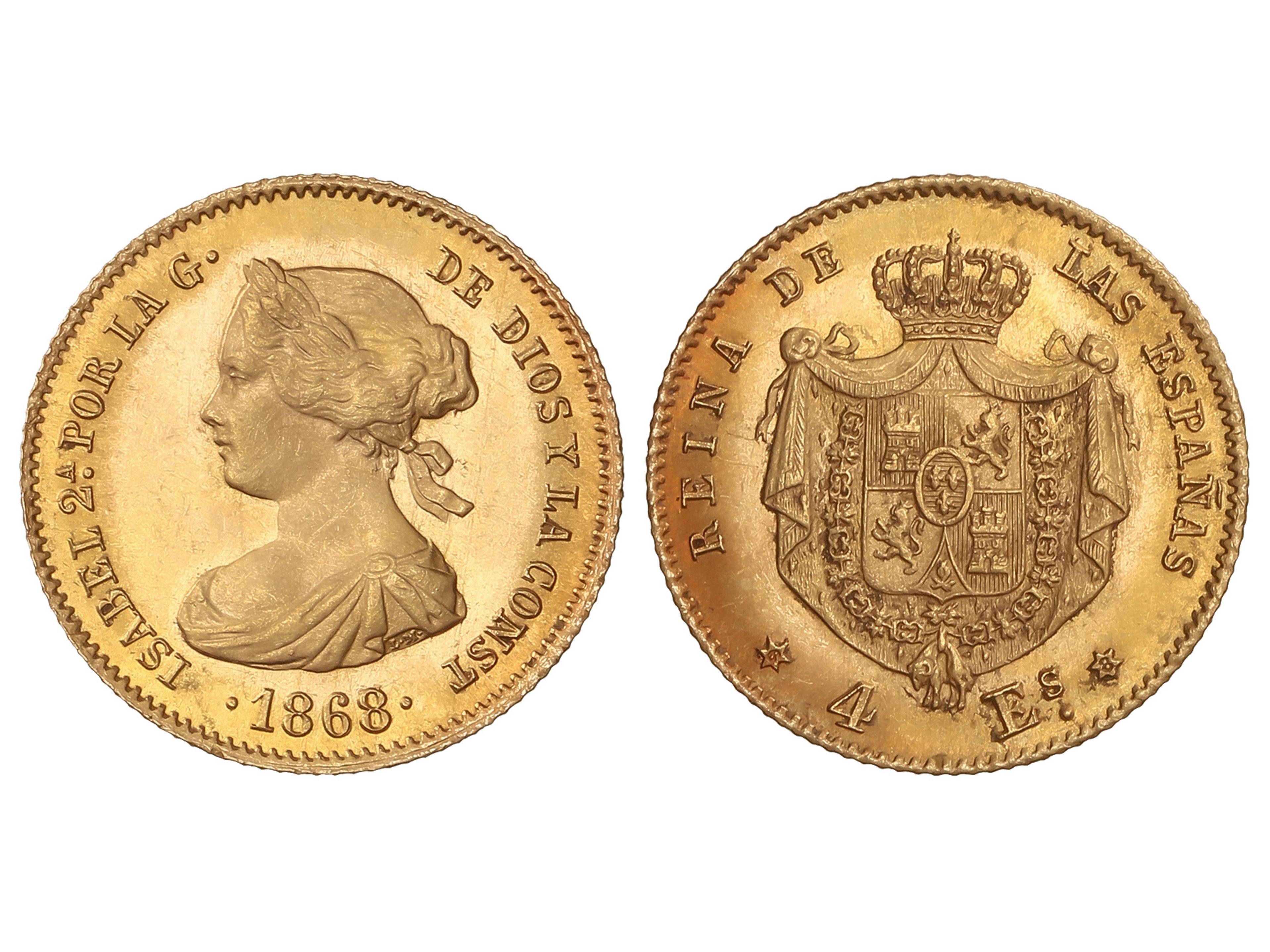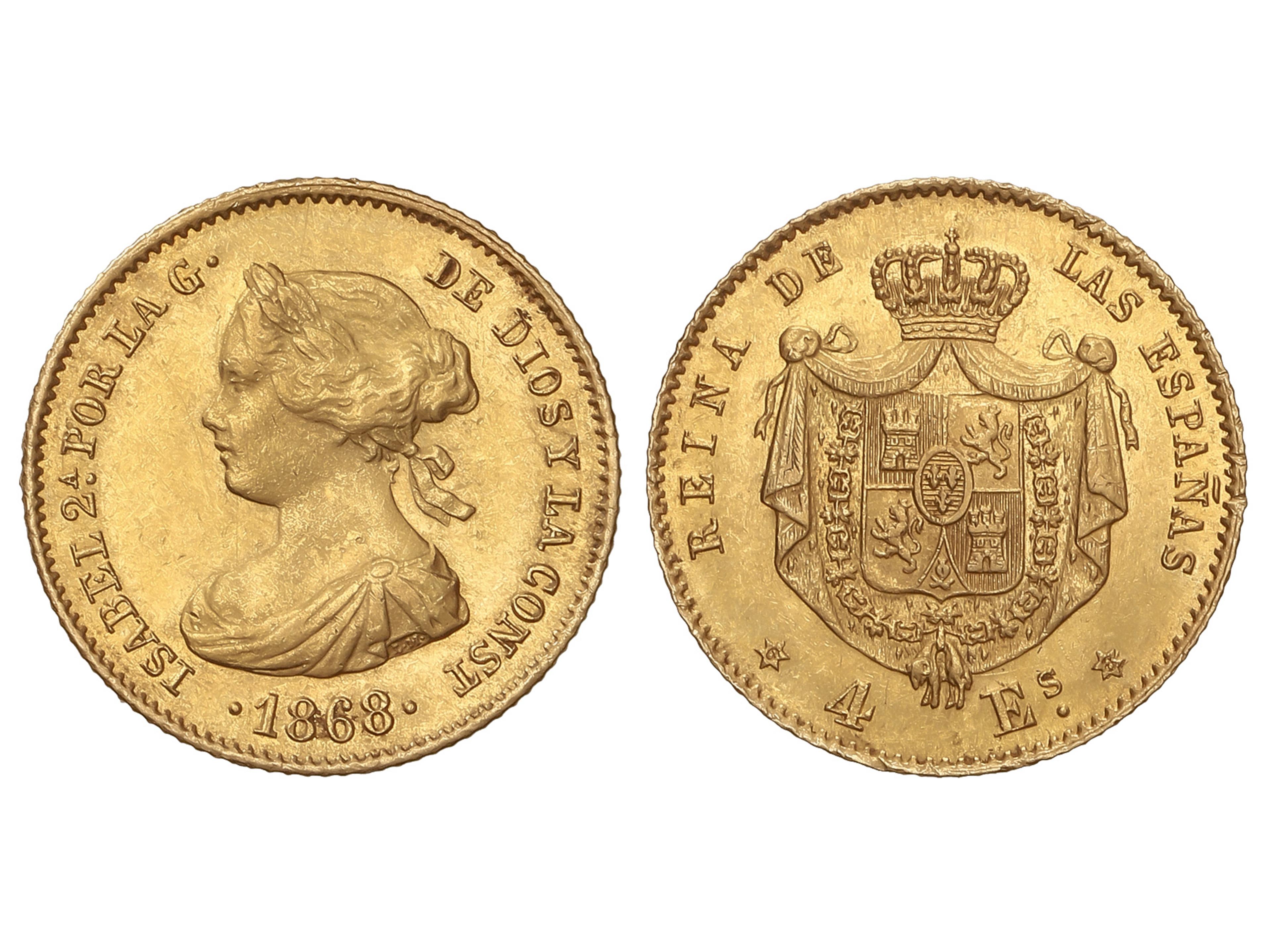 Escudos. 1868 (*6-8). MADRID. 3,38 grs. (Levísimos golpecitos en canto). AC-693. EBC-. (Image1)