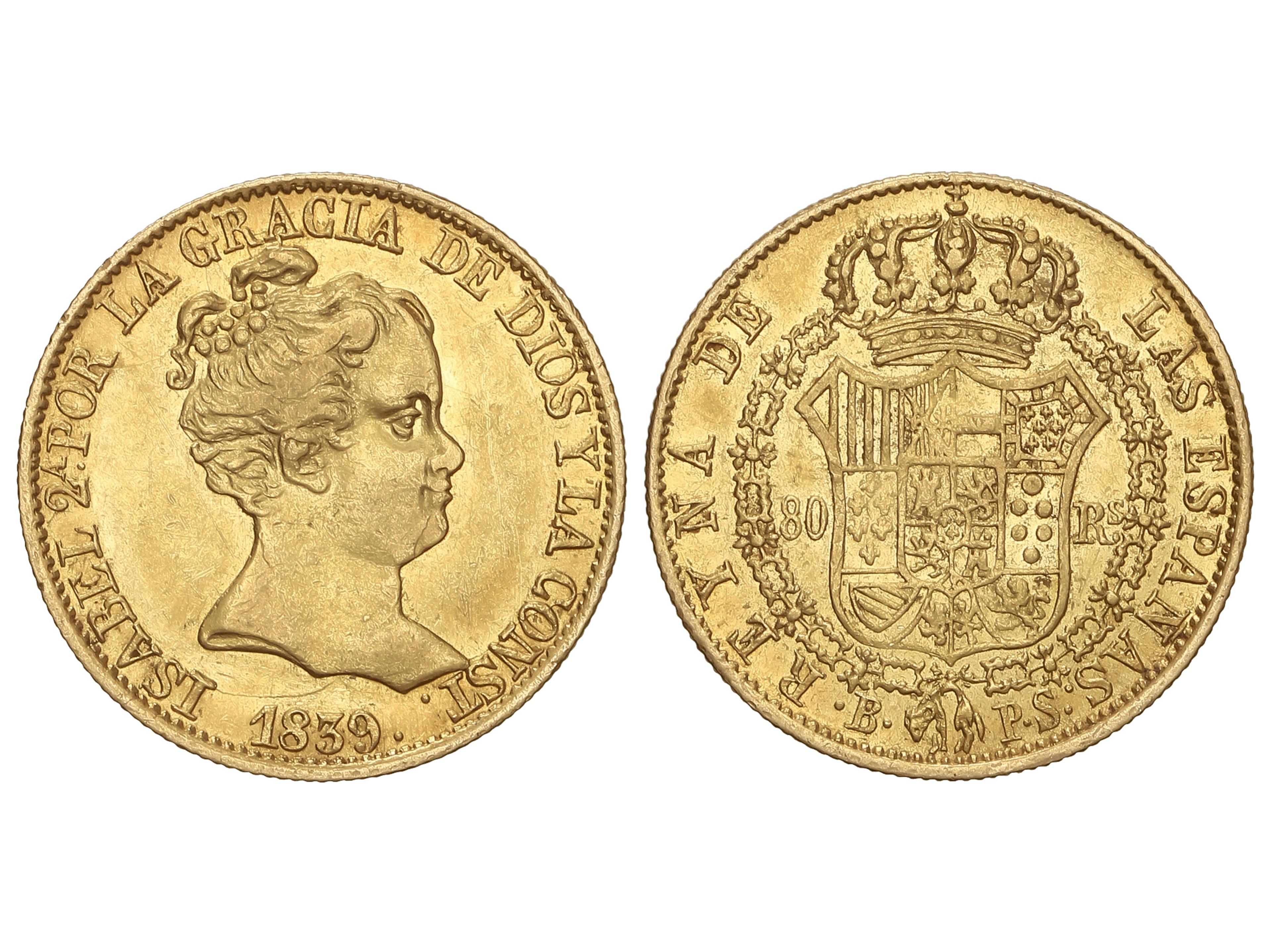 80 Reales. 1839. BARCELONA. P.S. 6,71 grs. AC-704. (EBC-). (Image1)
