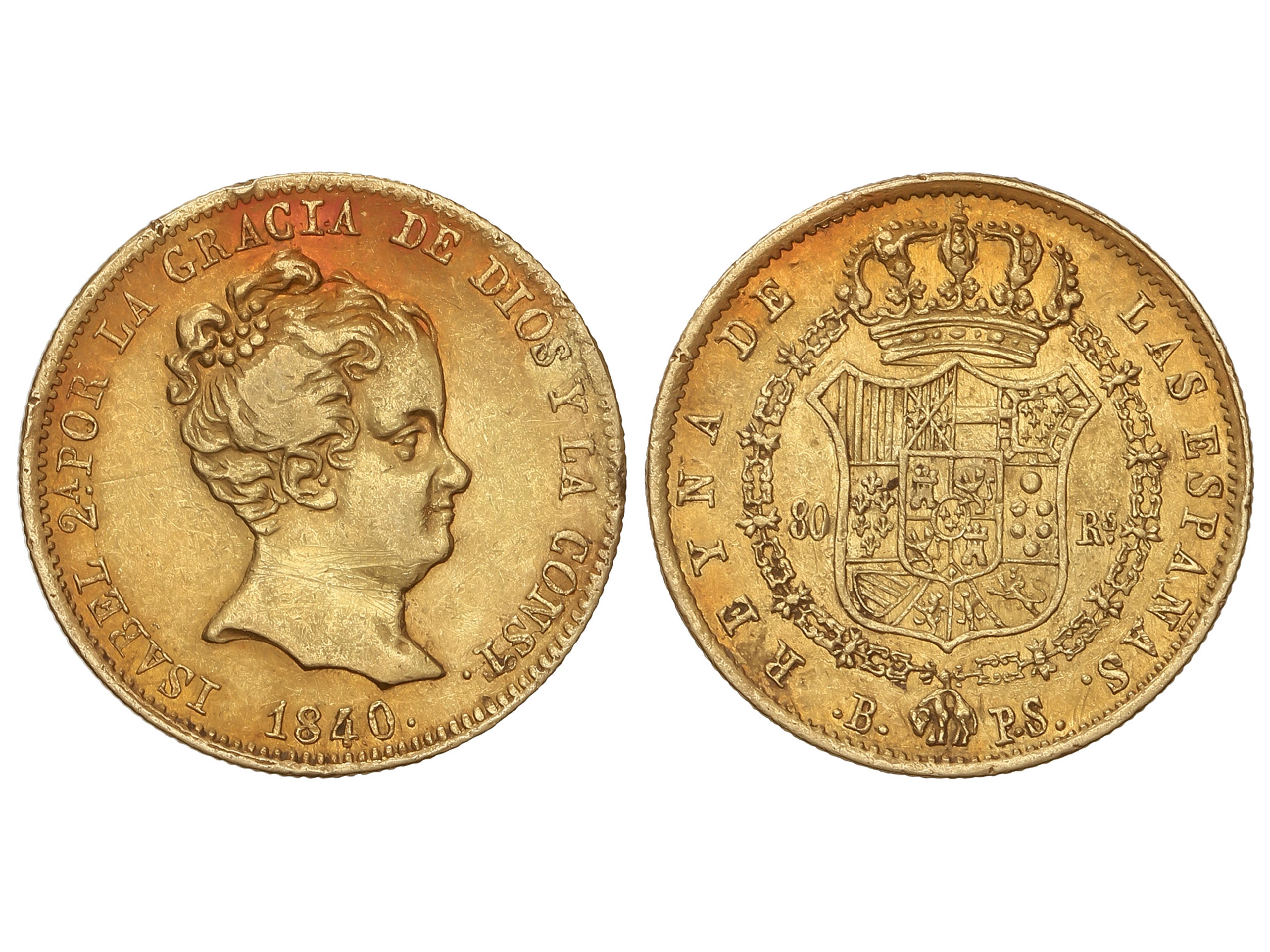 80 Reales. 1840. BARCELONA. P.S. 6,74 grs. (Pequeños golpecitos y rayitas). AC-705. MBC+. (Image1)