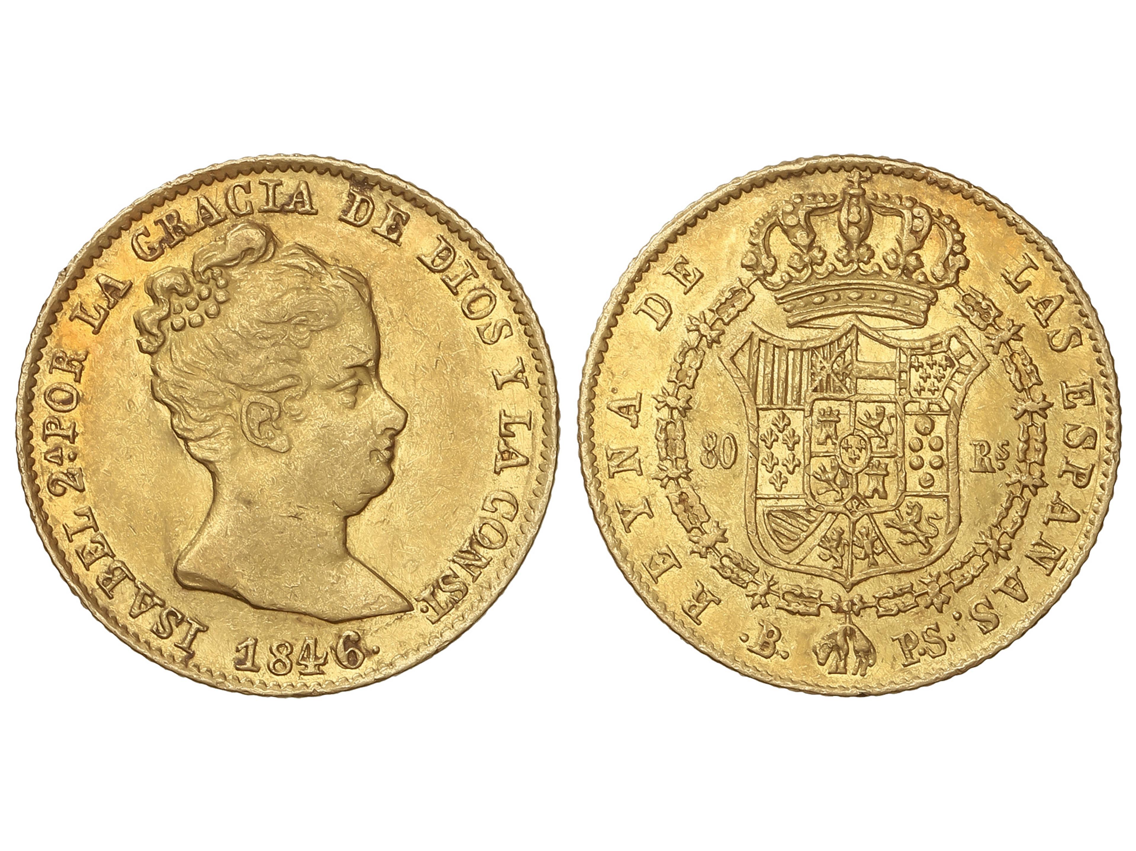 80 Reales. 1846. BARCELONA. P.S. 6,73 grs. AC-715. MBC+. (Image1)
