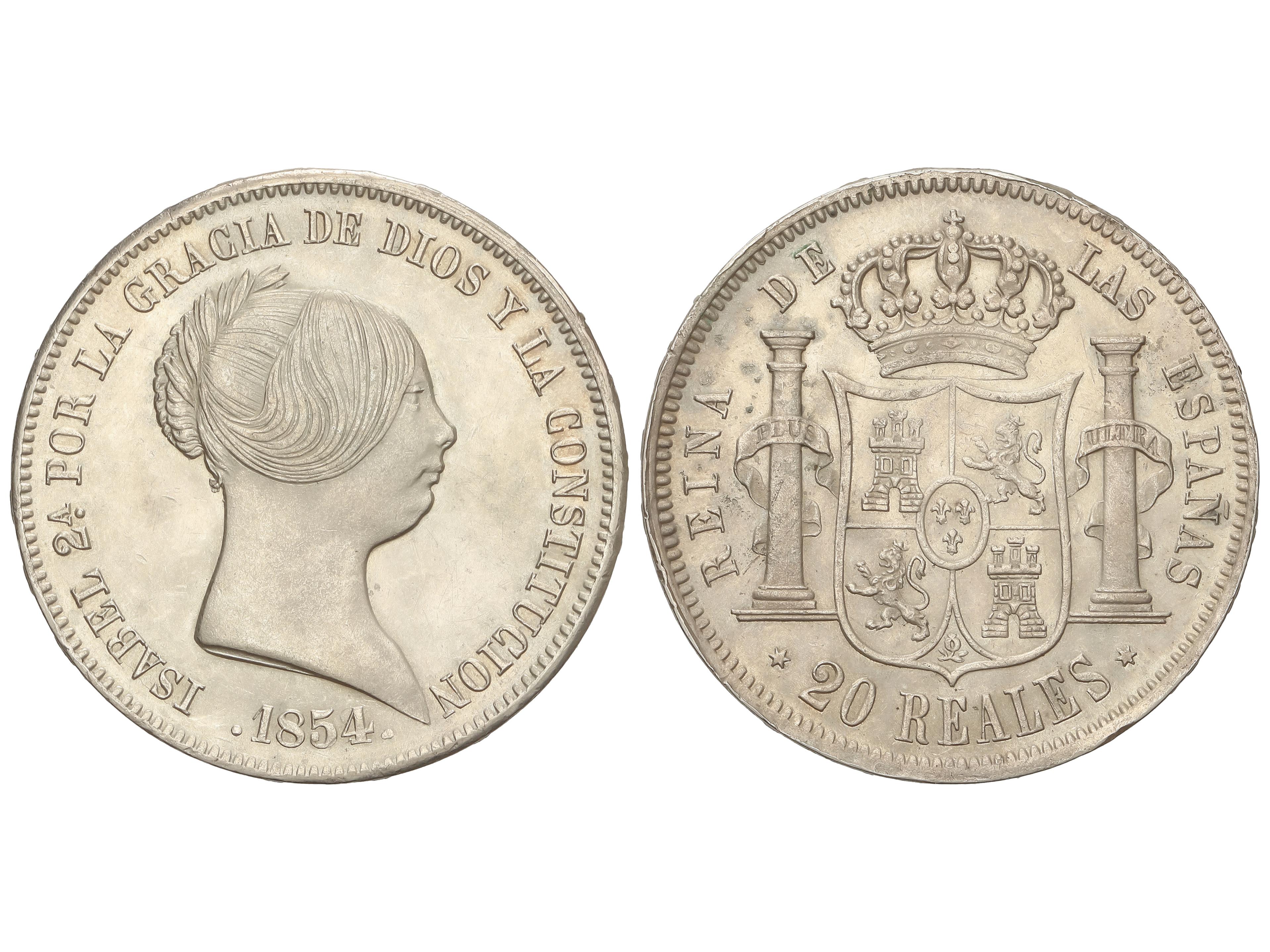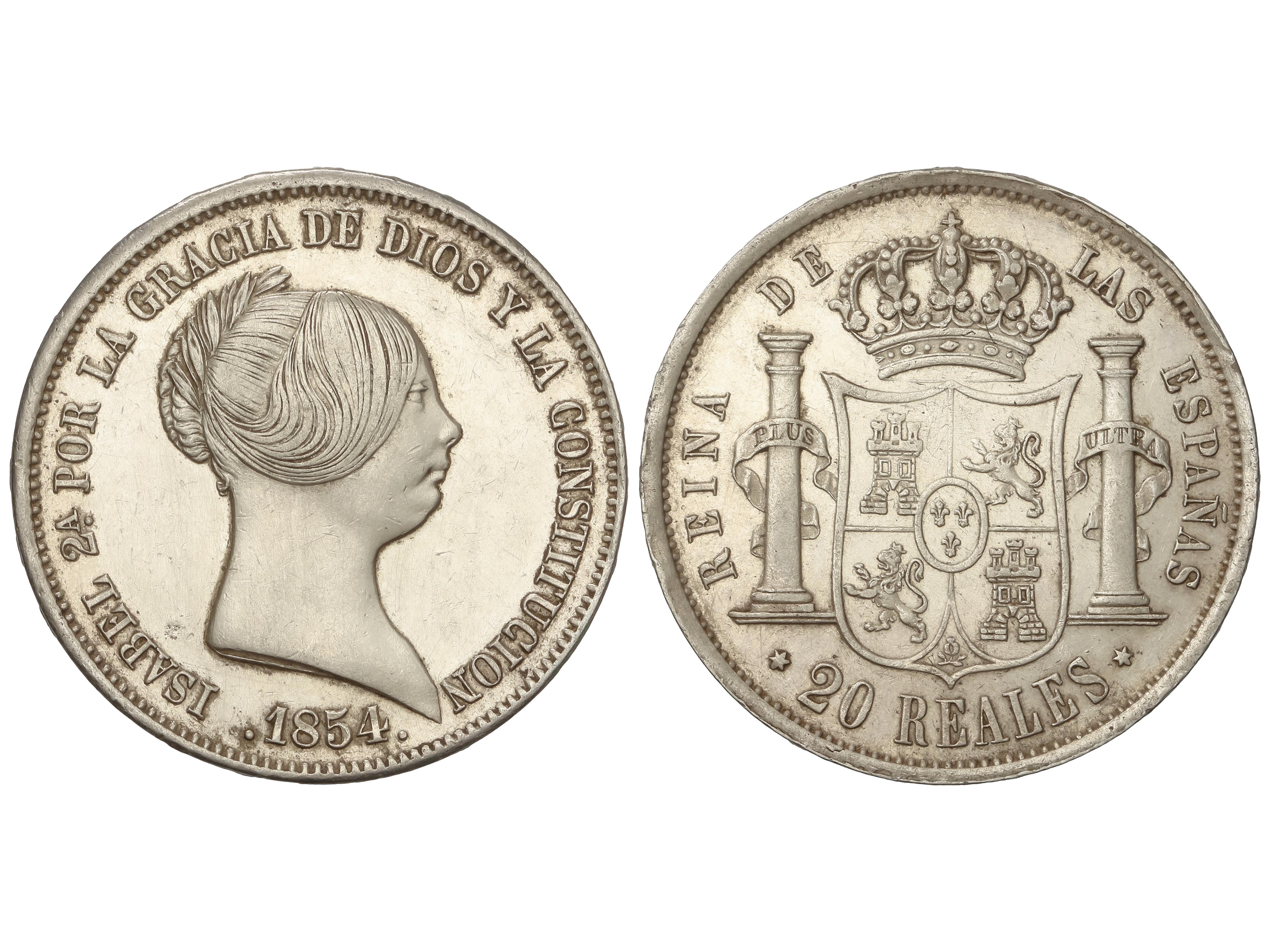 20 Reales. 1854. MADRID. 25,84 grs. (Algo limpiada). AC-596. EBC-. (Image1)