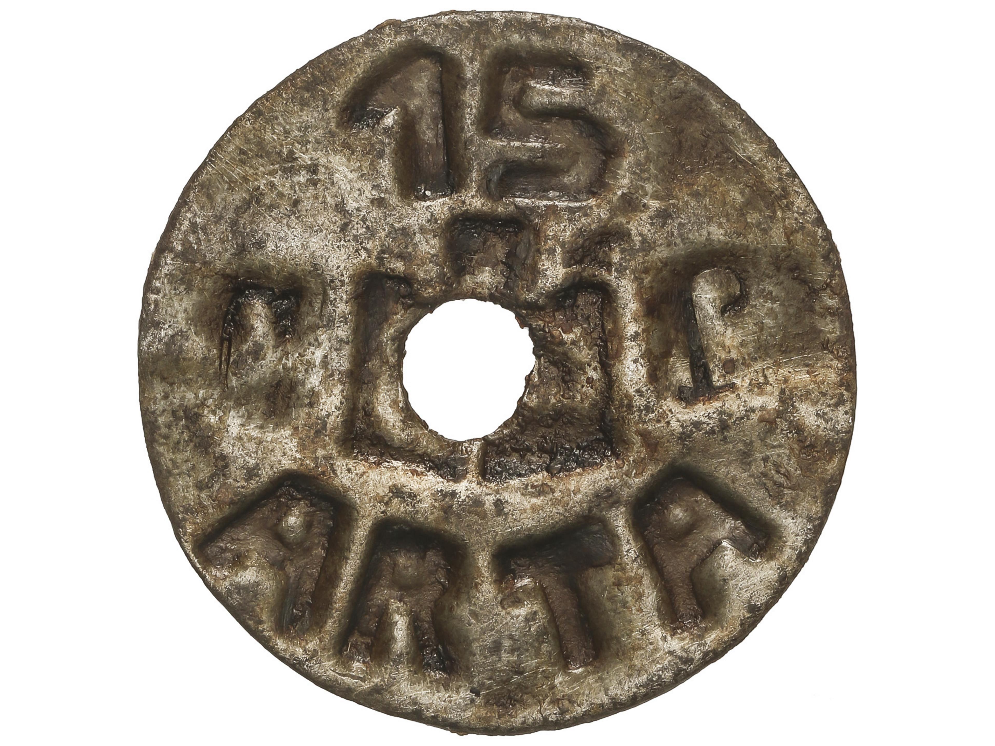 663 image15 Céntimos. ARTÀ. MALLORCA. 1,62 grs. Lata. Ficha o jito de la población, durante la Guerra civil y la Postguerra. RARISIMAS. MBC+. (Image1)