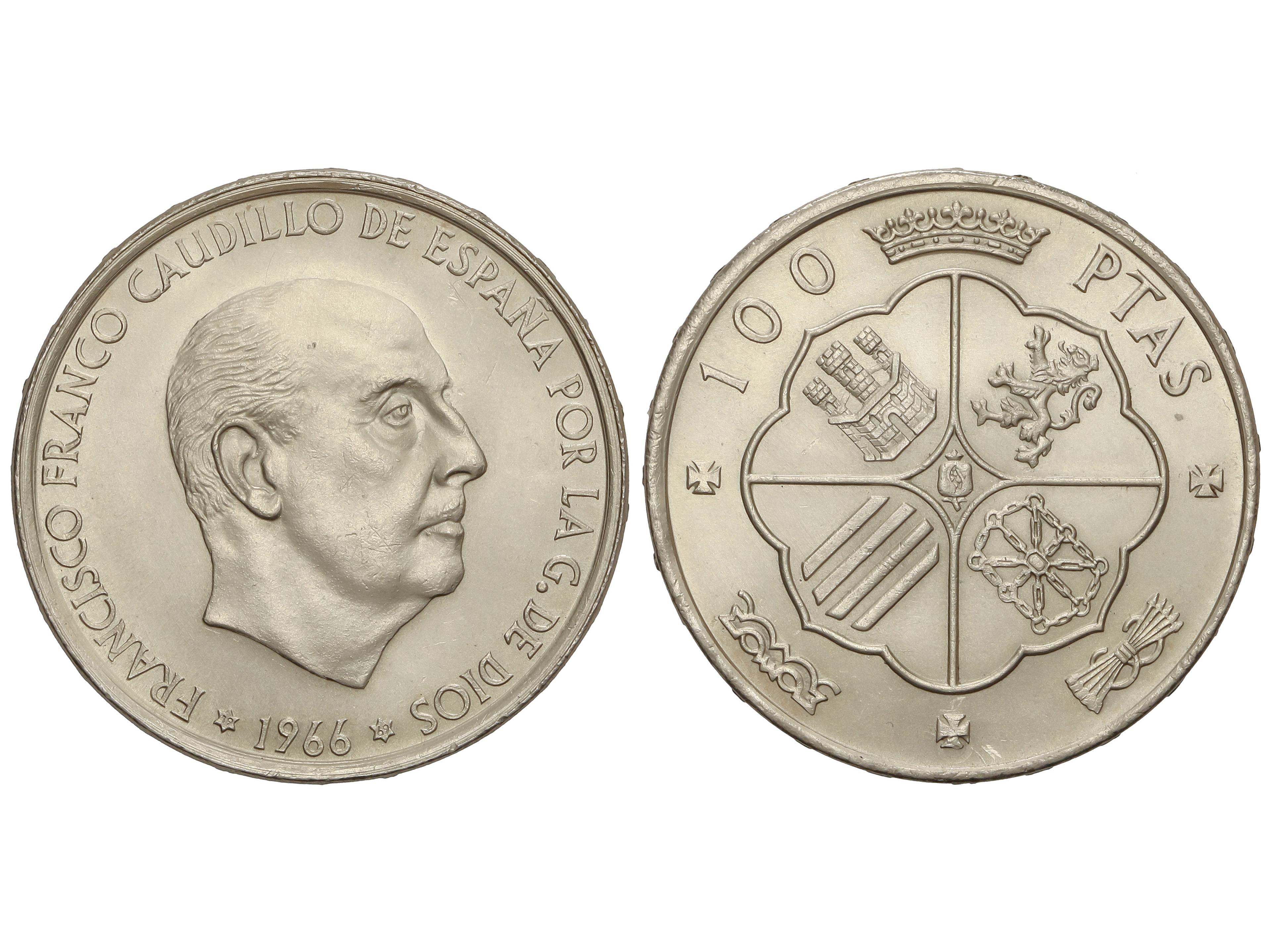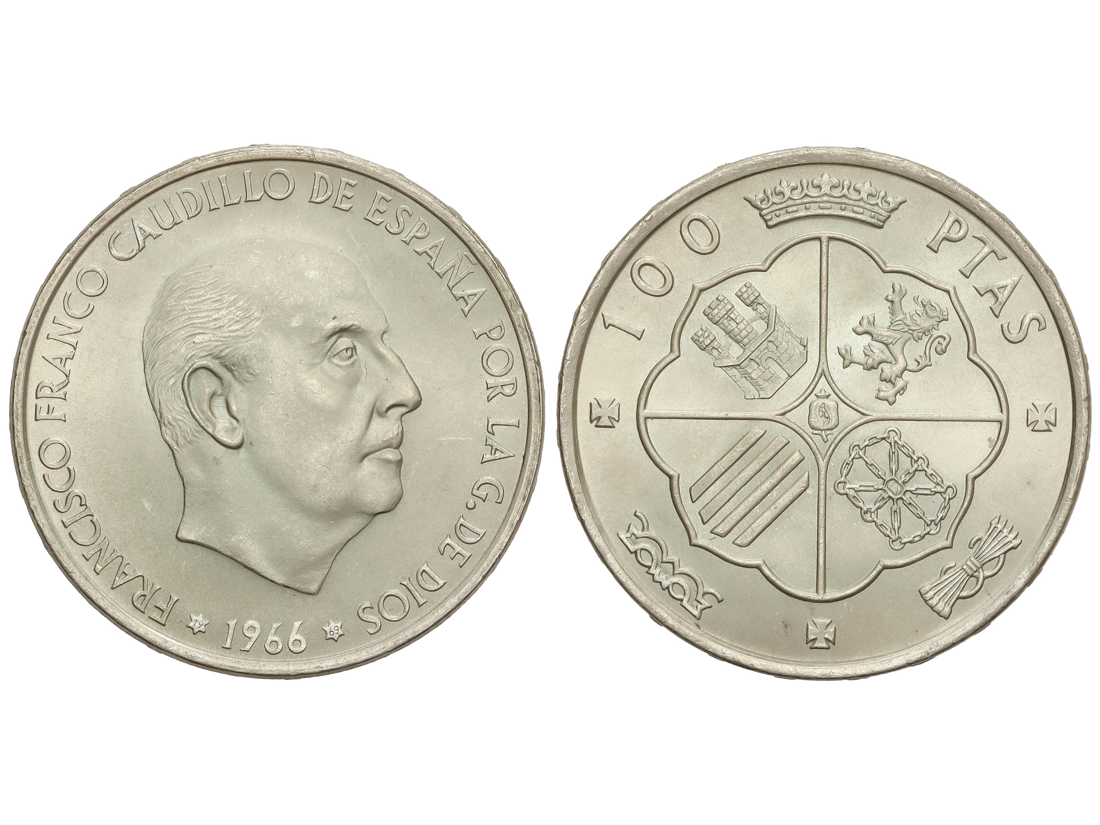 678 image100 Pesetas. 1966 (*19-69). Palo recto. EBC+. (Image1)