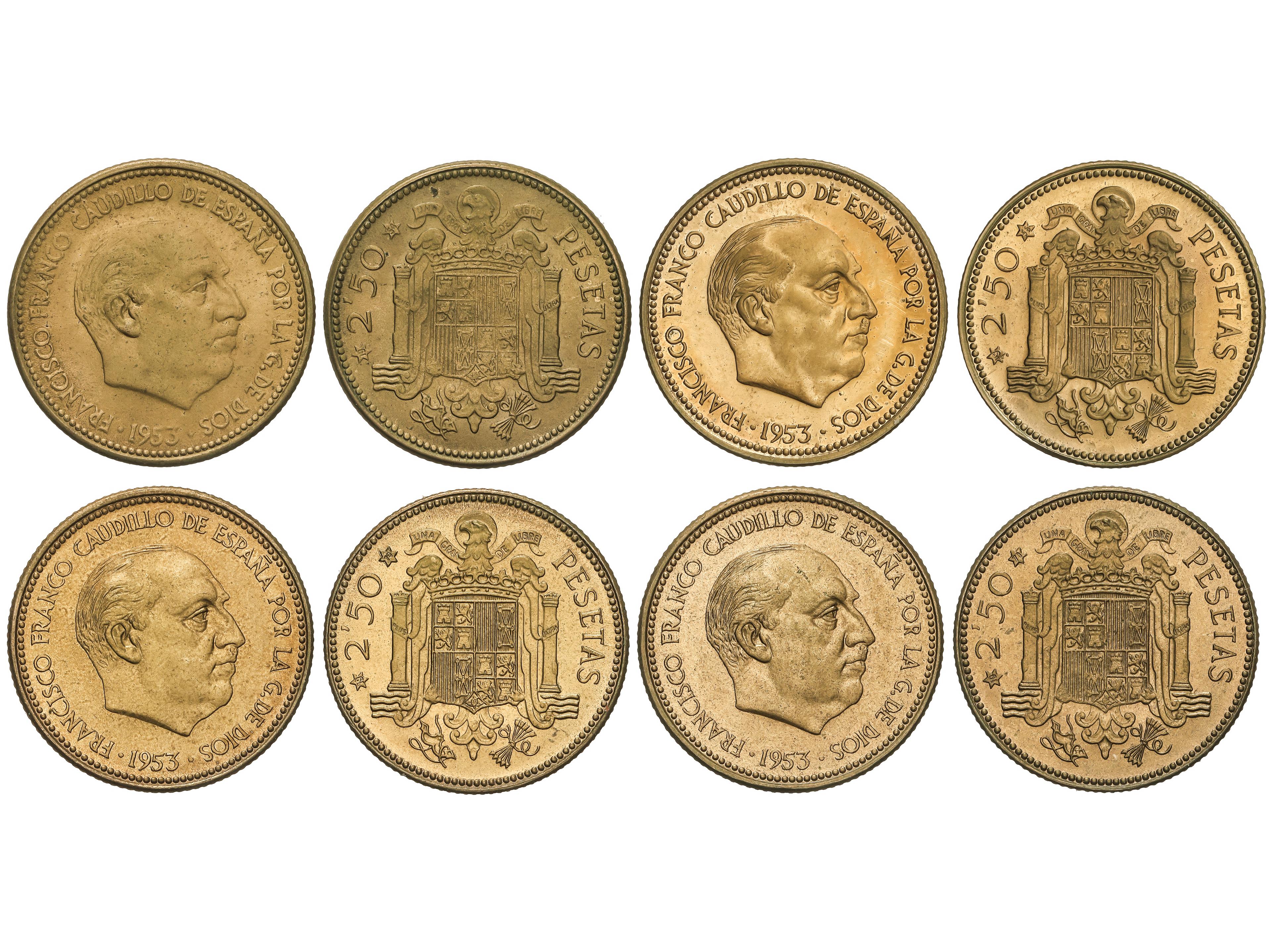 682 imageLote 4 monedas 2, 50 Pesetas. 1953 (*54, 56, 70, 71). SC- a SC. (Image1)