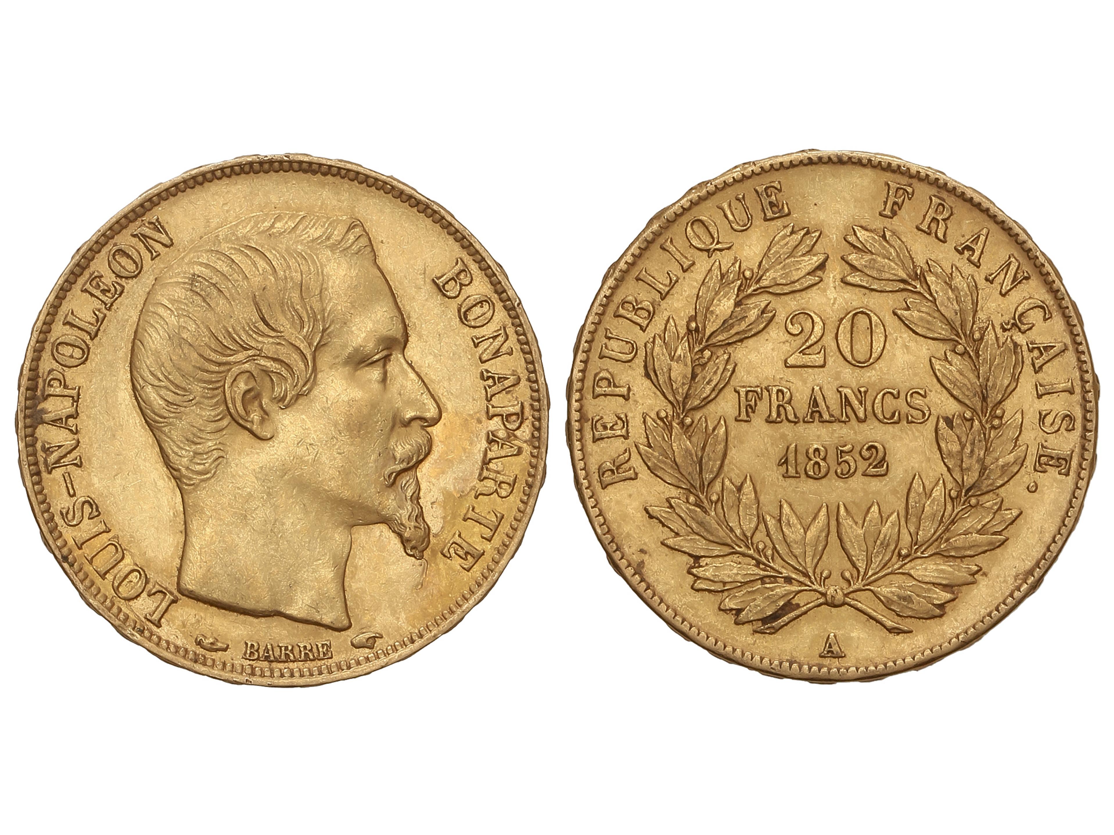 819 image20 Francs. 1852-A. LOUIS NAPOLEON. PARIS. 6,44 grs. AU (900). Fr-568; KM-774. MBC+. (Image1)