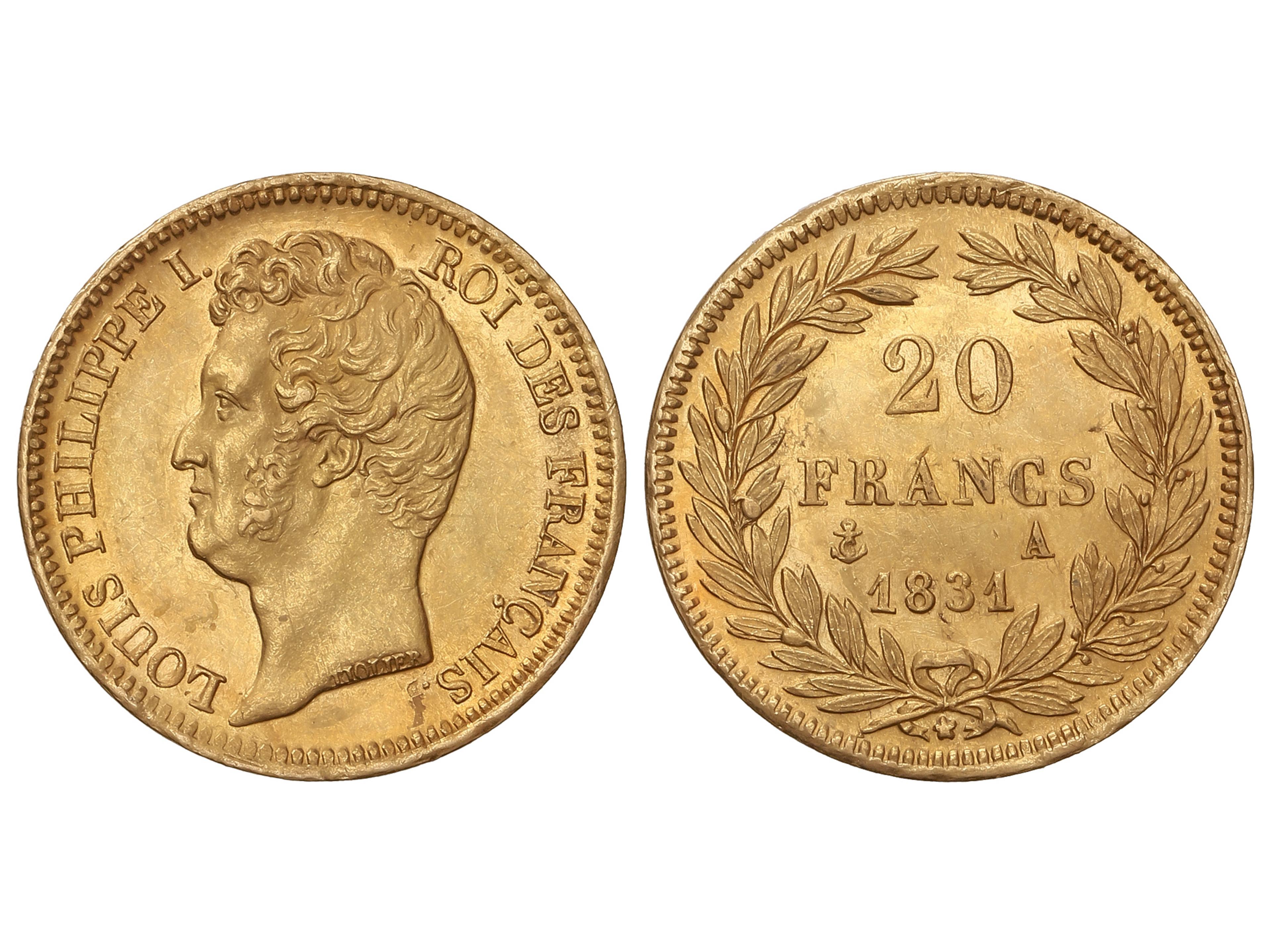 817 image20 Francs. 1831-A. LOUIS PHILIPPE I. PARIS. 6,47 grs. AU (900). Leyenda incusa en el canto. (Leves golpecitos). Fr-553; Fr-739.1. EBC. (Image1)