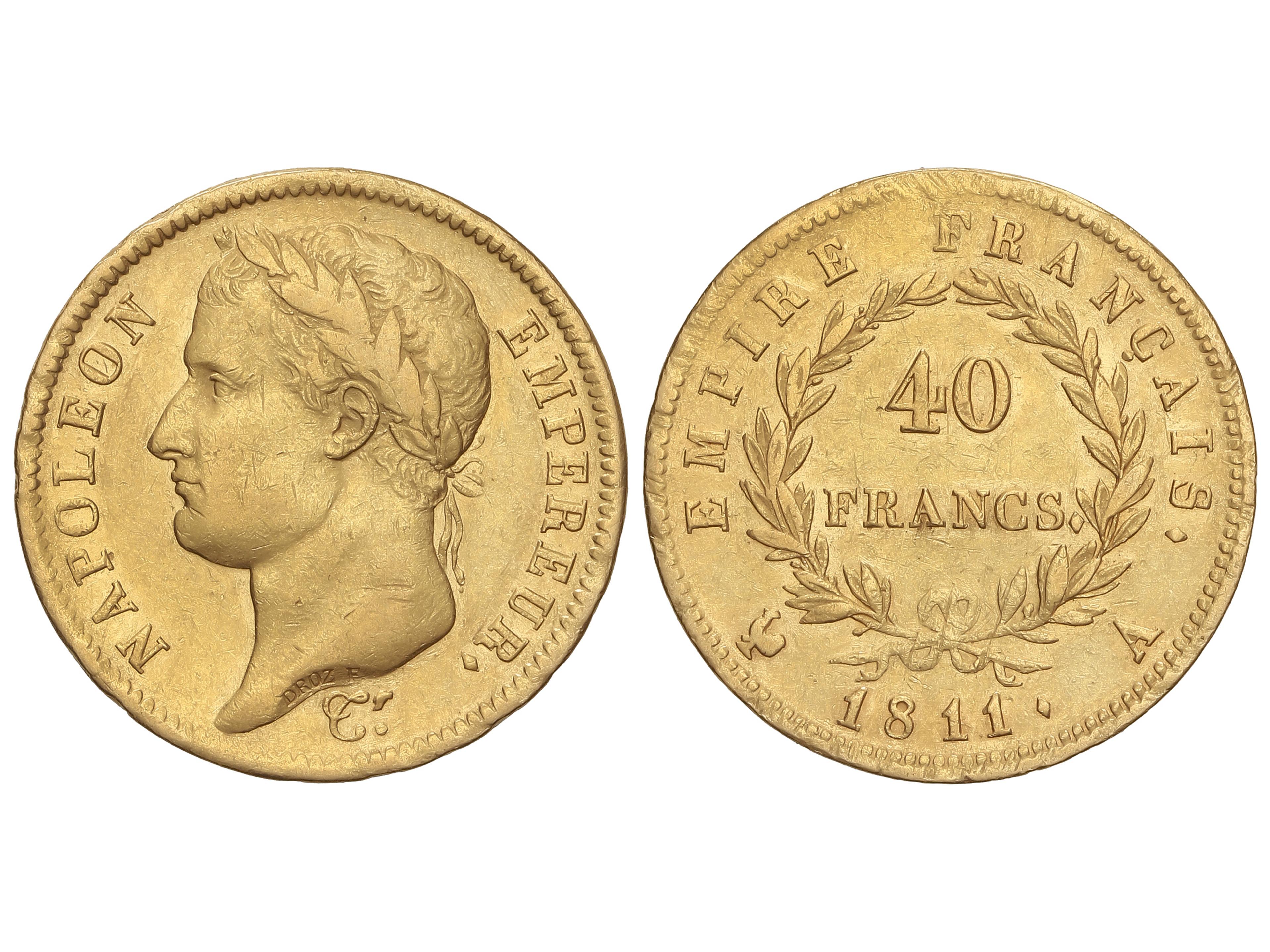 822 image40 Francs. 1811-A. NAPOLEON EMPEREUR. PARIS. 12,84 grs. AU (900). (Ha estado en aro). Fr-505; KM-696.1. MBC. (Image1)