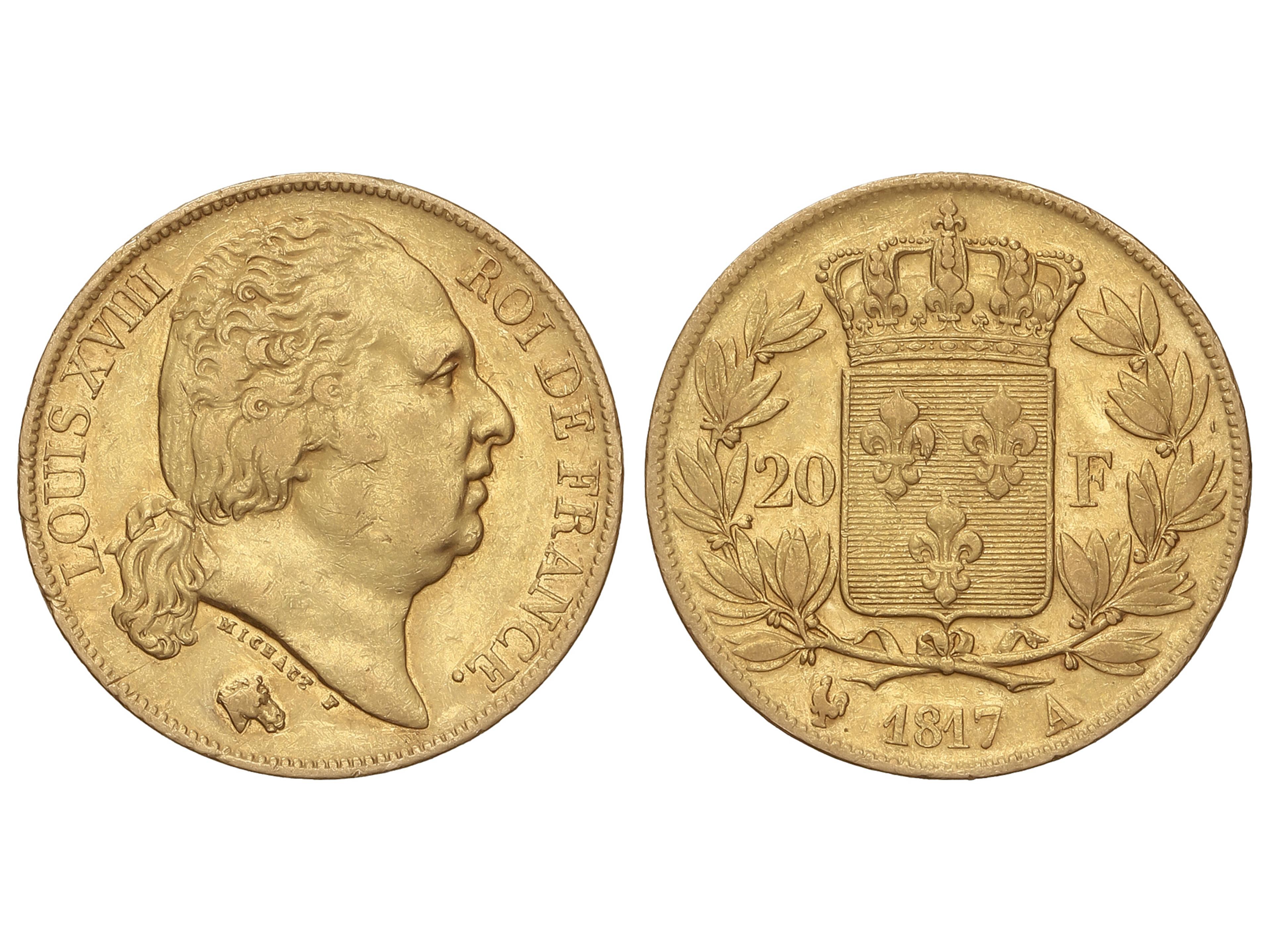 815 image20 Francs. 1817-W. LOUIS XVIII. LILLE. 6,46 grs. AU (900). (Pequeños golpecitos). Fr-539; KM-712.9. MBC+. (Image1)