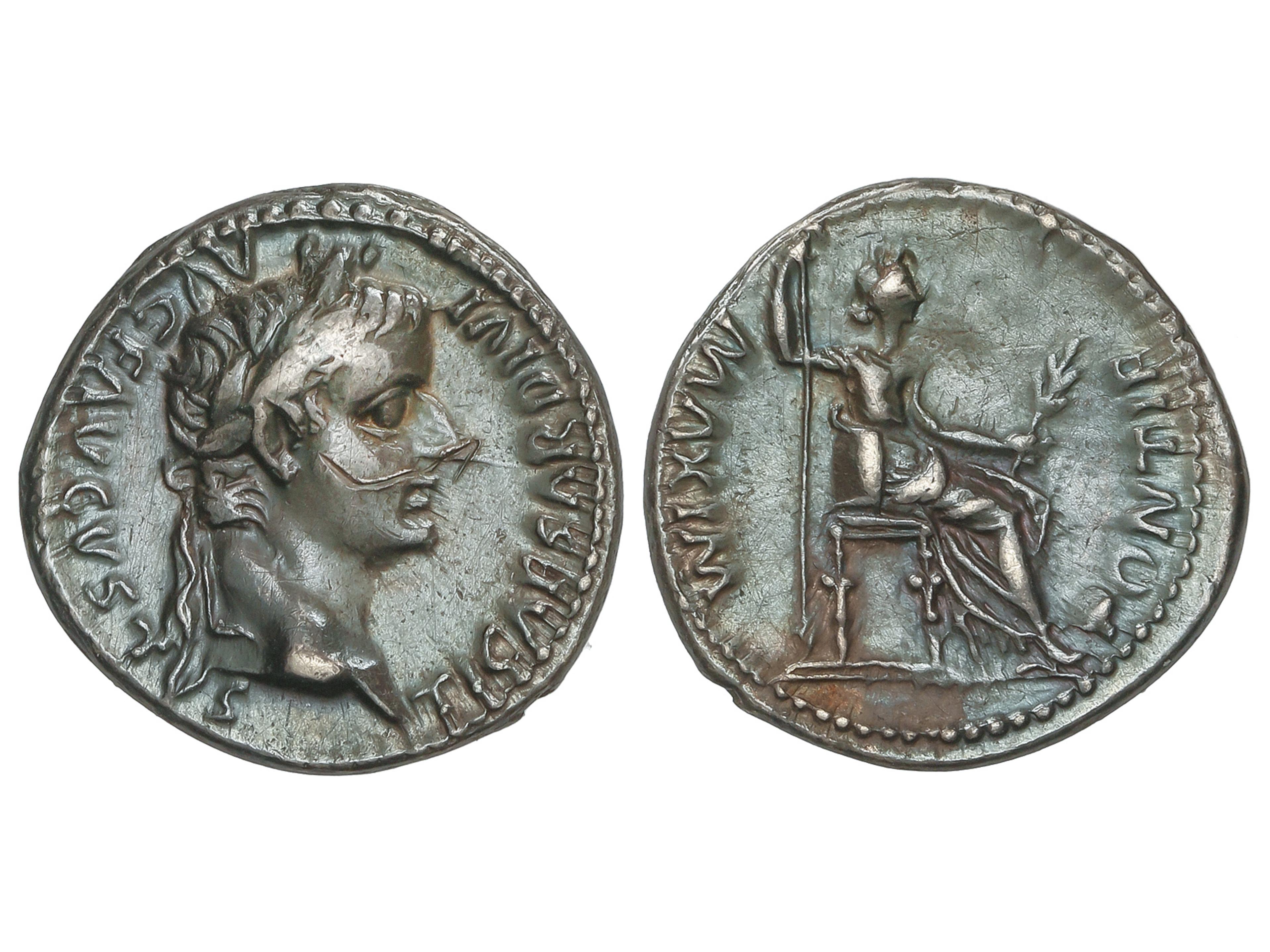 2026 imageDenario. 14-37 d.C. TIBERIO. Anv.: TI. CAESAR DIVI. AVG. F. AVGVSTVS. Cabeza laureada a derecha. Rev.: PONTIF. MAXIM. Livia sentada a derecha. 3,70 grs. AR. (Raya en anverso). Pátina oscura irisada. C-16; RIC-26. MBC+. (Image1)