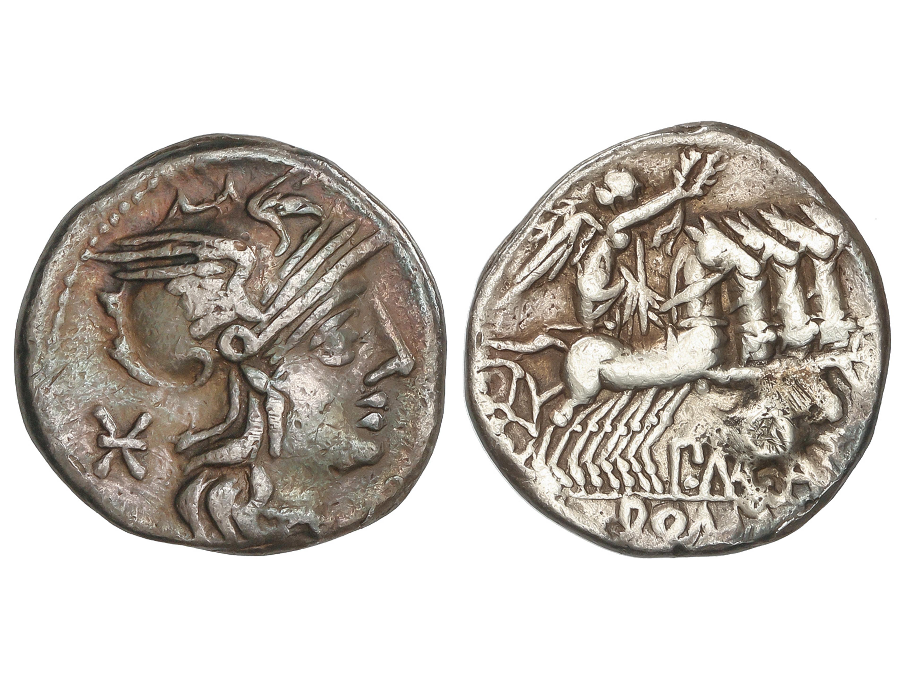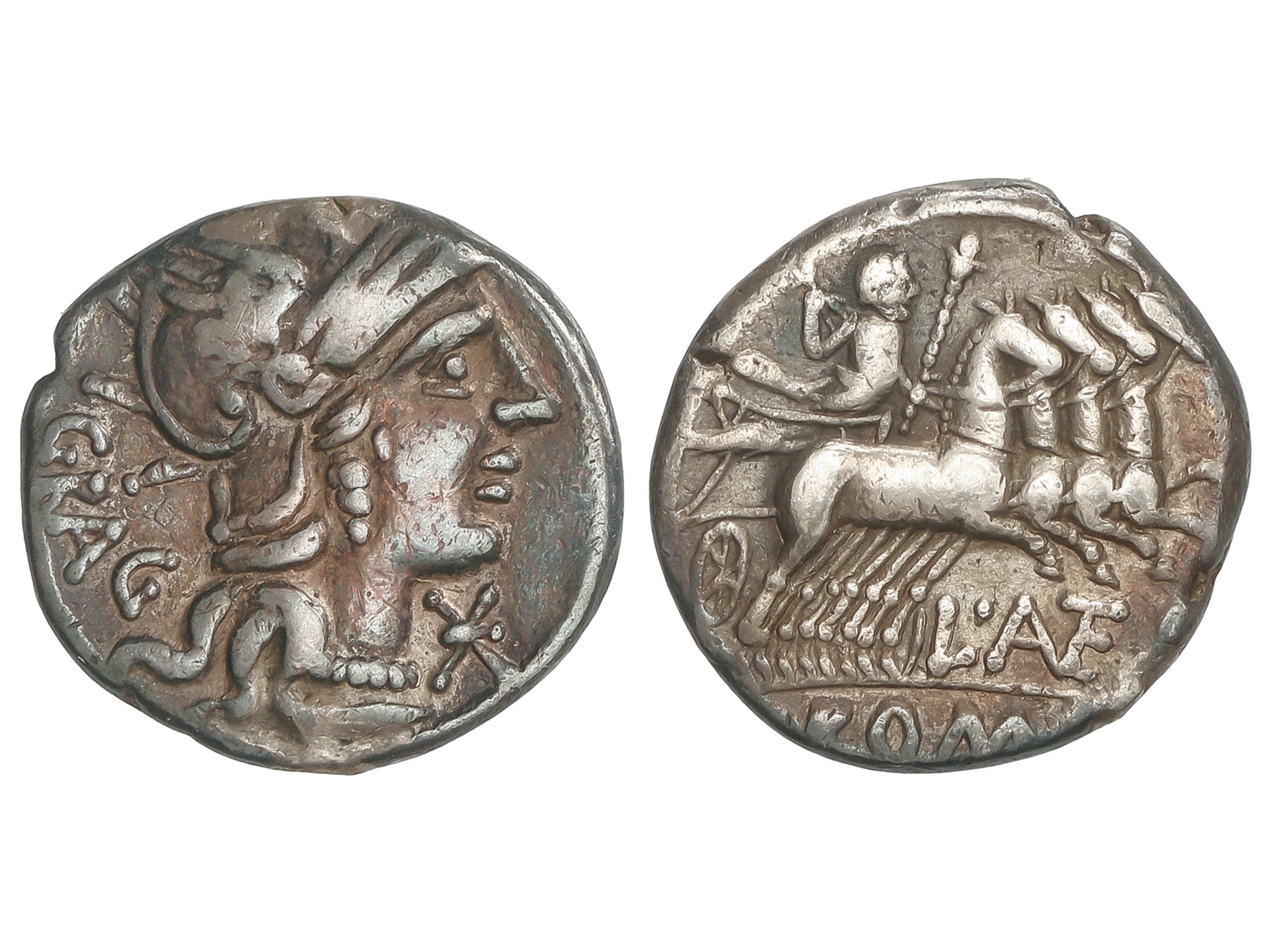 2021 imageDenario. 136 a.C. ANTESTIA. L. Antestius Gragulus. Anv.: Cabeza de Roma a derecha, entre GRAC y *. Rev.: Júpiter en cuadriga a dcha. L. ANTES, en exergo: ROMA. 3,92 grs. AR. Pátina oscura en anverso. BMC-976; Cal-127; Craw-238/1; FFC-151; Se-9. MBC. (Image1)