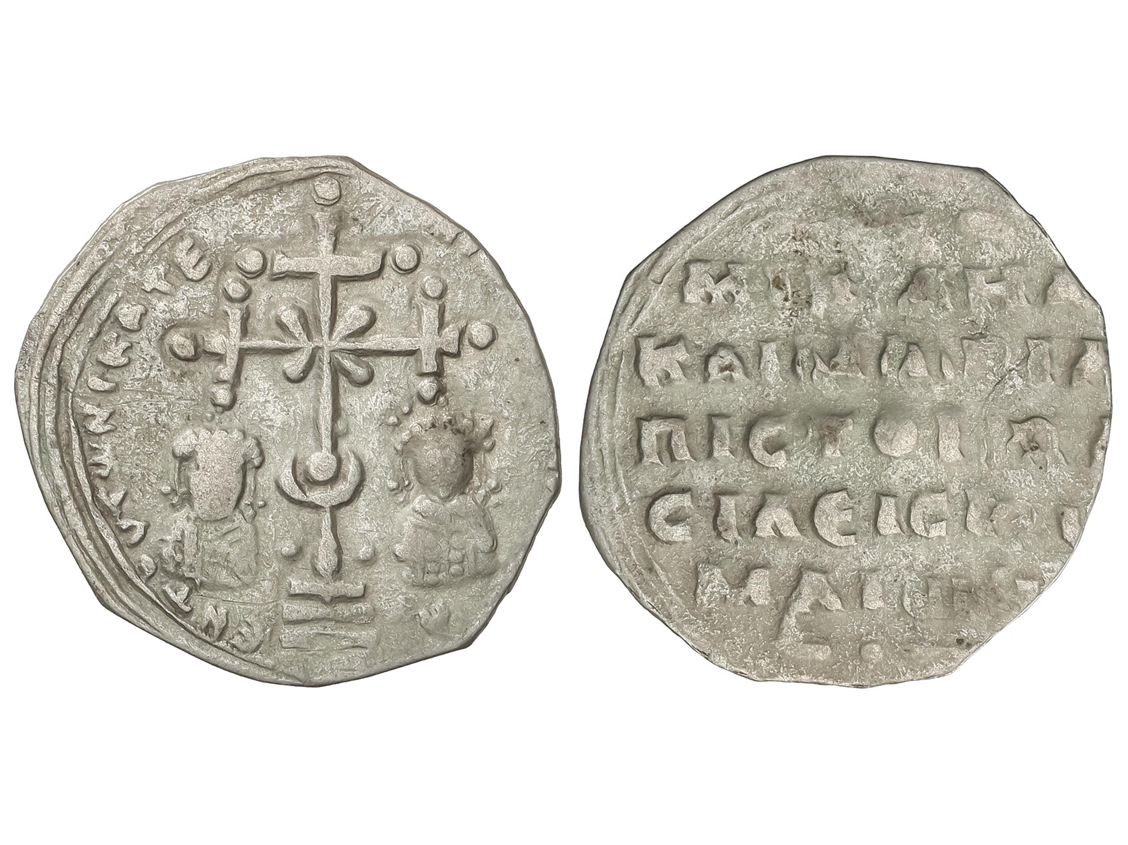 2029 imageMiliaresion. MIGUEL VII (1071-1078). CONSTANTINOPLA. Anv.: Cruz sobre tres peldaños a los lados Miguel y María. Rev.: Leyenda en 5 líneas. 1,70 grs. AR. Se-1874. MBC-. (Image1)