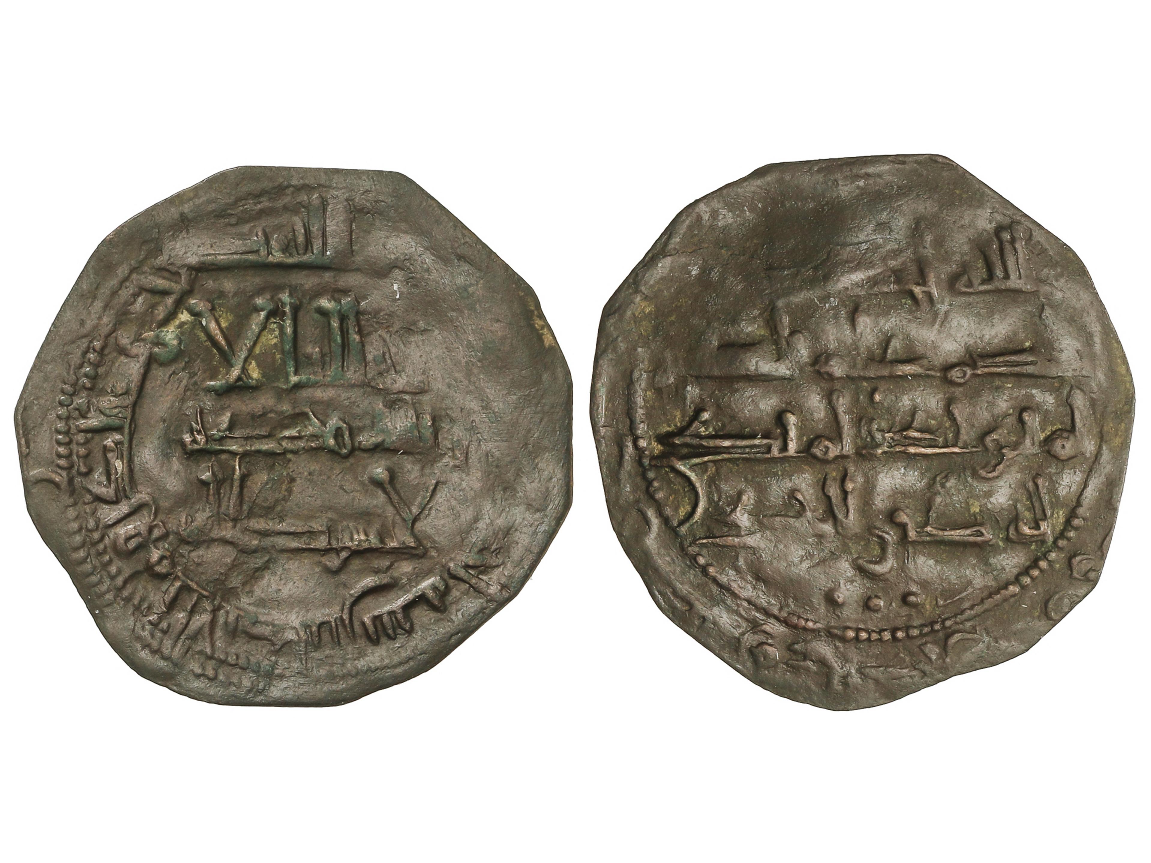 2033 imageDirham falso de época. __1H. MUHAMMAD II. AL-ANDALUS. 1,91 grs. AE. (Algo recortada). Pátina oscura. MBC. (Image1)